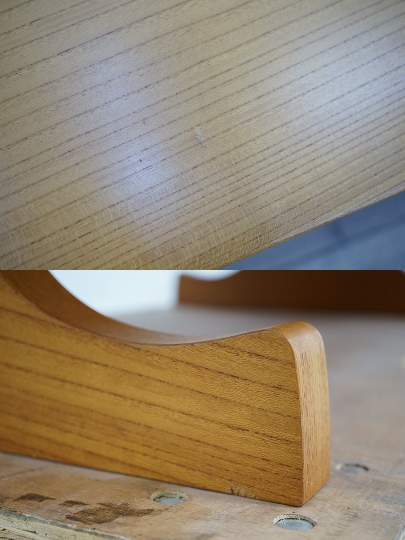 ■東ハ:【天童木工/Tendo】剣持勇デザイン 座卓 約120.2×75㎝ 高さ約33.3㎝ ビンテージ 文机 座敷机 座卓 センターテーブル ★送料無料★■ 1960年代に剣持勇氏がデザインした「 天童木工 座卓 」になります。 オリジナルは、丹下健三氏とのコラボレーションで有名な熱海ガーデンホテルに納入されたもので 当時は文机として納入され、座卓として活用されていたようです。 現在では廃番となっており、 ビンテージのみで入手可能の稀少なデザイナーズ家具としていかがでしょうか。 【 天童木工 (TENDO) 】 天童木工は1940年、山形県にて創業。 美しい自然と数々の名所を誇る山形県天童市は、 古くから将棋の駒をはじめとする木工業の盛んな街としても知られています。 人に個性があるように木にも種類によって強度、重さ、色、木目など それぞれ固有のキャラクターがあります。 木を愛し、鍛え、美しく機能的な「木と対話をする」ということが 天童木工の木へのこだわりです。 【サイズ】 (約) 高さ33.3 × 幅120.2 ×奥行75.0 cm 中古のお品となります。 付属品は写真にあるものが全てです。 使用に伴うキズ・ケズレ、小さなヘコミが複数、天面部に色ヤケがございます。 商品画像をよくご確認の上、ご参加ください。 [管理No.25062584R1] |