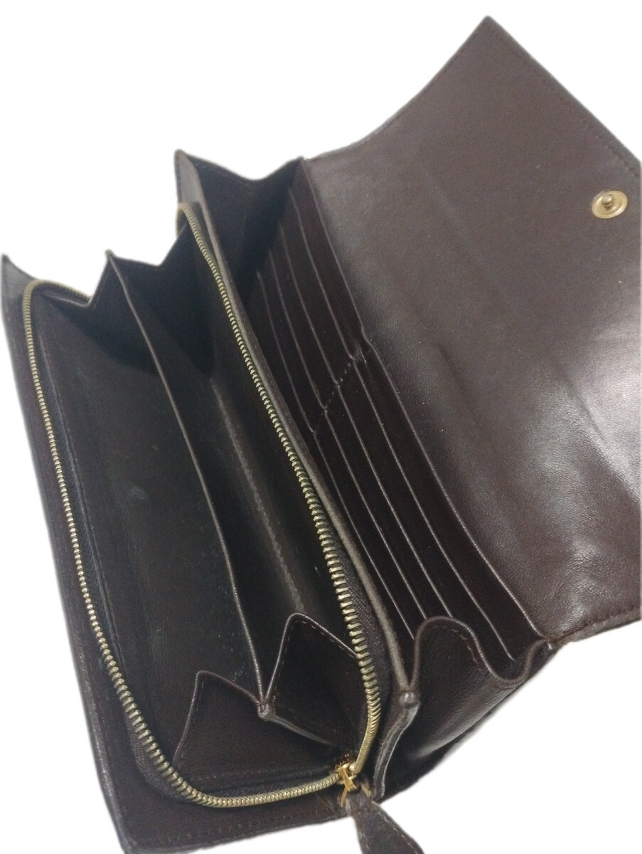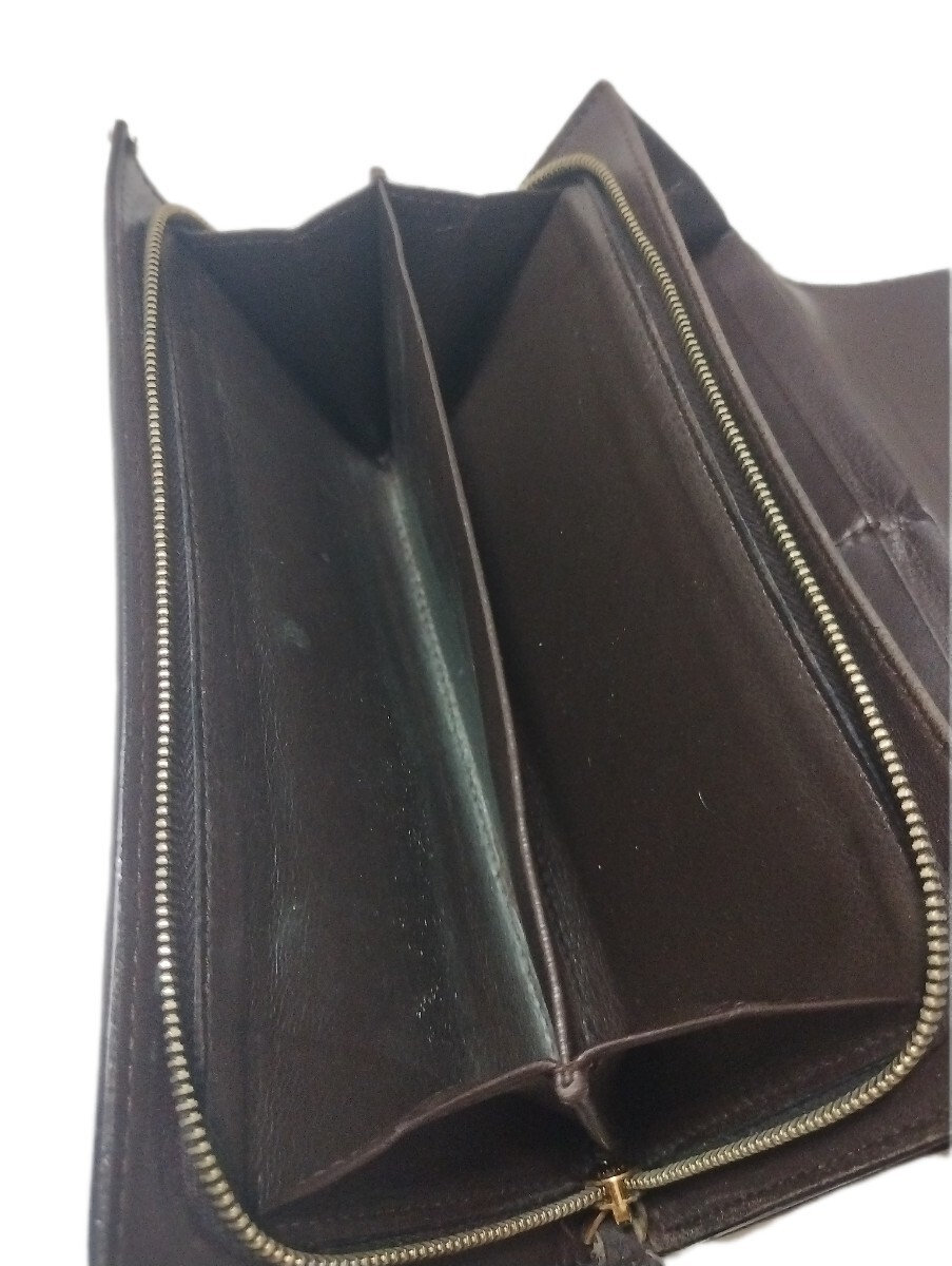 全体的に型崩れがあり使用感があります。四隅またはコバ剥がれあり、小銭入れ汚れあり、