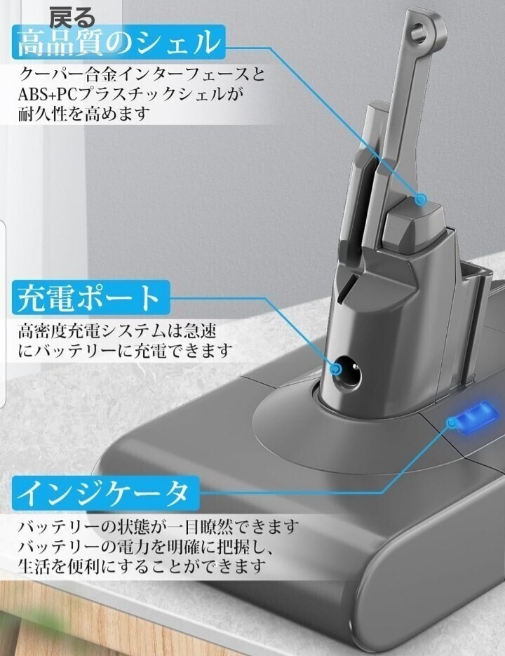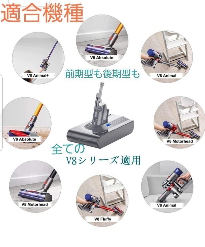 未使用展示品 ダイソンV8 SV10バッテリー 4000mAh 21.6V Dyson v8 sv10バッテリー 大容量V8 SV10互換バッテリー Dyson V8 Fluffy/Fluffy+/Animalpro/Absolute/Absolute-Extra/Motorheadシリーズ