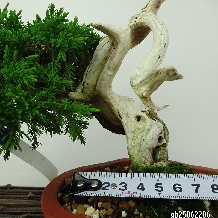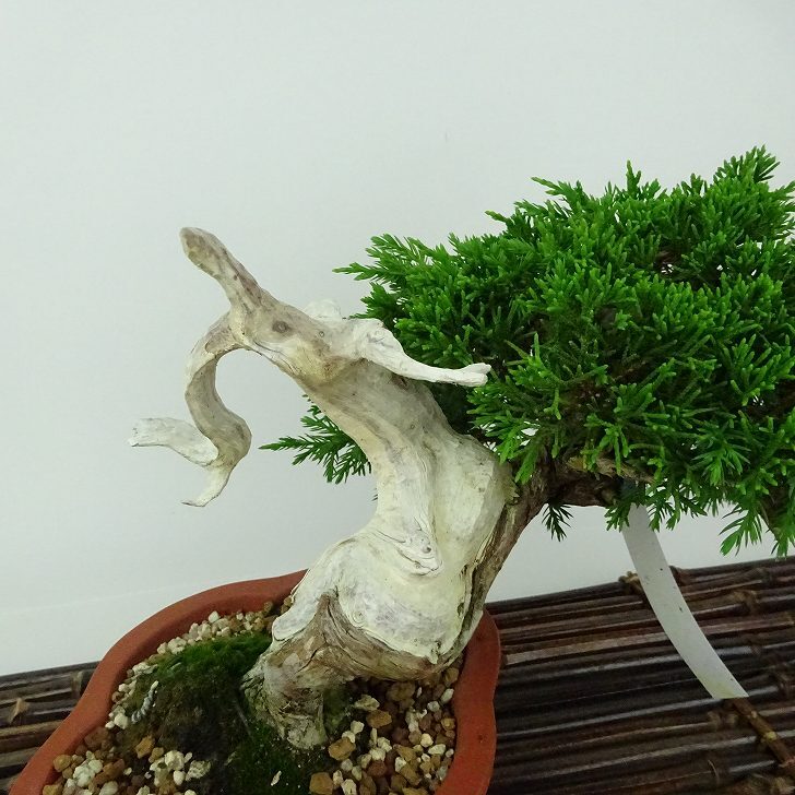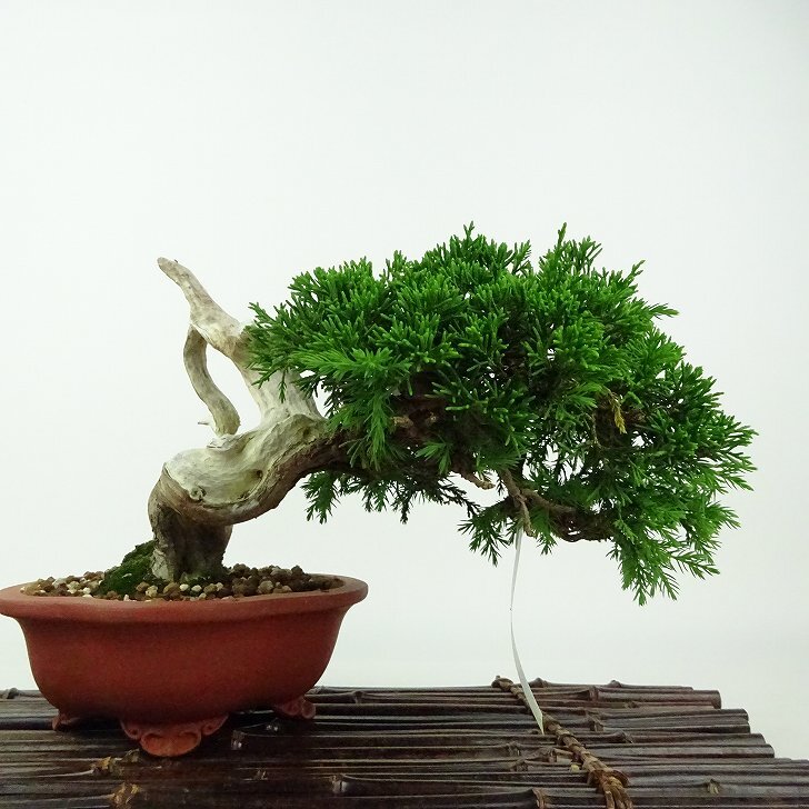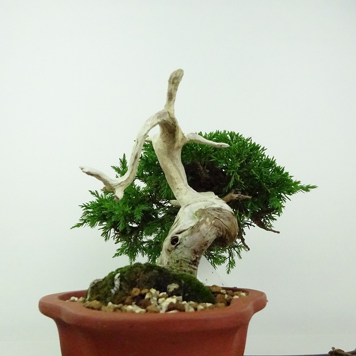 ■植物ですので撮影時期や季節によって剪定などの手入れにより写真から変化がございます。撮影日をご確認のうえ、ご注文ください。 ■年に一度、冬頃にジン・シャリのお手入れをおこなっています。薬品の関係で黄色く変色しているようにみえる場合がありますが徐々に薄れていくので問題はありません。 【真柏盆栽】 シンパクの1番の特徴と言えば、短く締った紐状の葉と、わずかな水吸いでも生き抜くことができる強靱な幹枝です。自然界では積雪や強風などで押しつぶされ木部が露出し、朽ちて白骨化したものが見られます。枝の一部が白骨化したものを神(ジン)、幹の場合は舎利(シャリ)といいます。 |