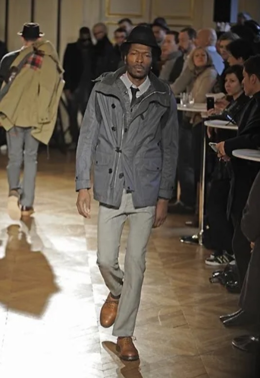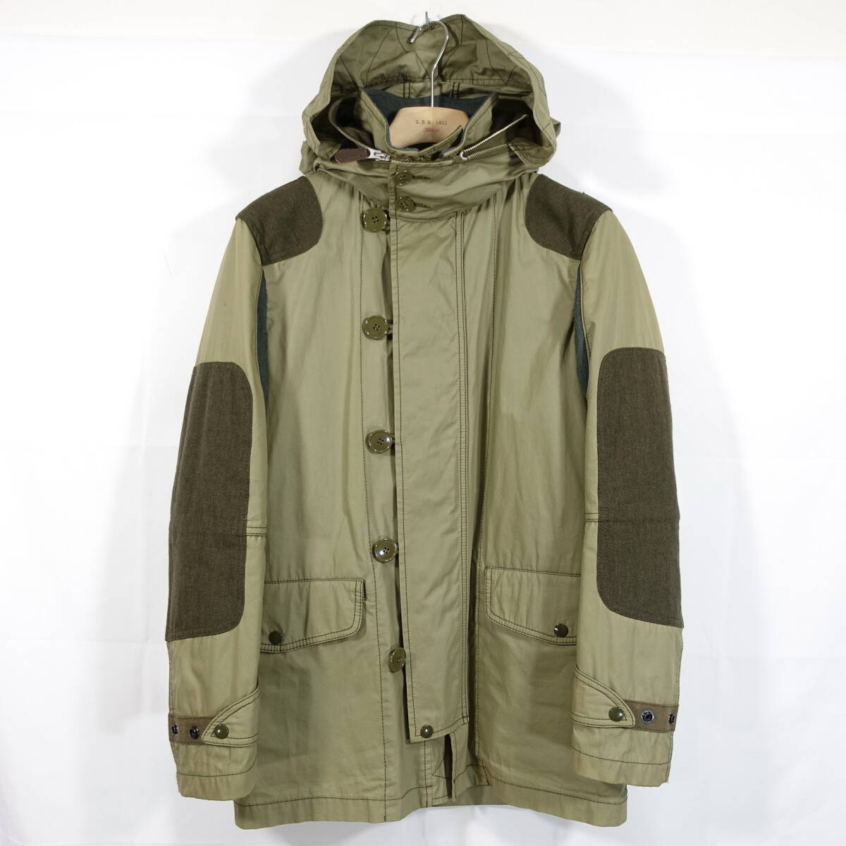 フードを背面に収納した立ち上がりの良い襟や、3種類の同色系の生地を組みあわせたデザインもジュンヤらしいワーク感のある雰囲気です。