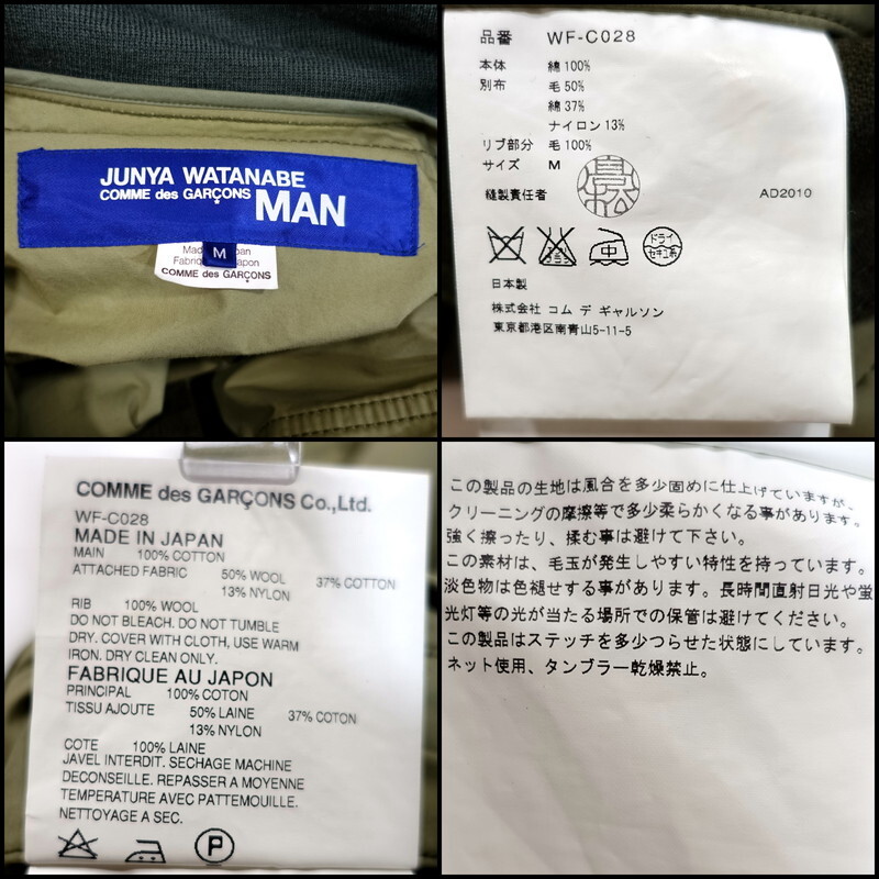 【良品】ジュンヤワタナベマン N-3B コート JUNYA WATANABE MAN comme des garcons サイズM カーキ