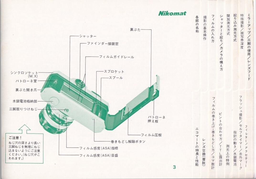 ニコン NIKON Nikomat FTN 取扱説明書 オリジナル版(極美品)です・全 34頁・メール便 発送、可能商品です。