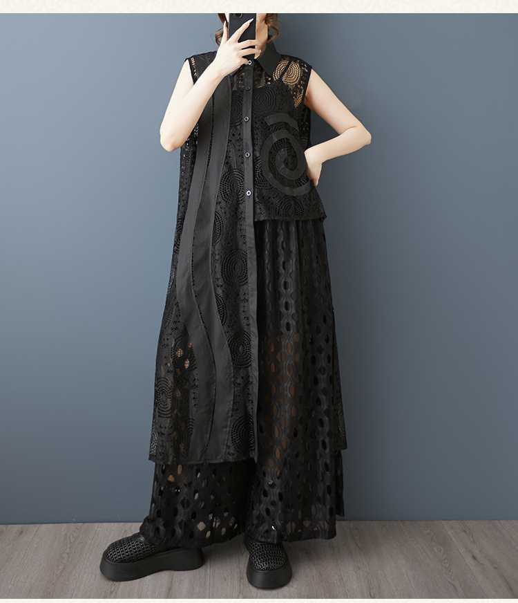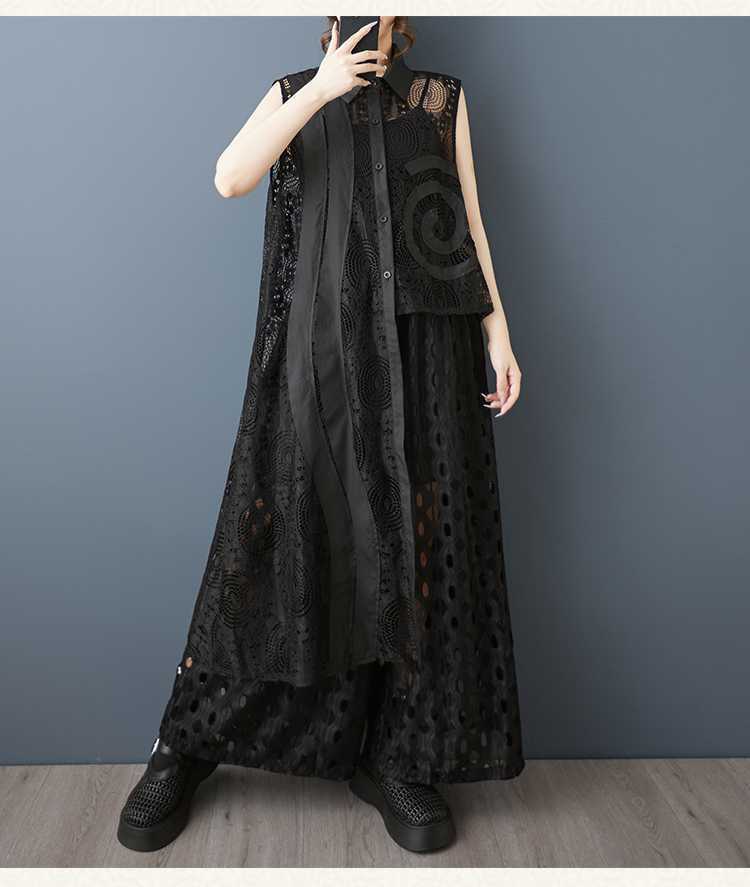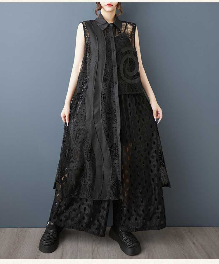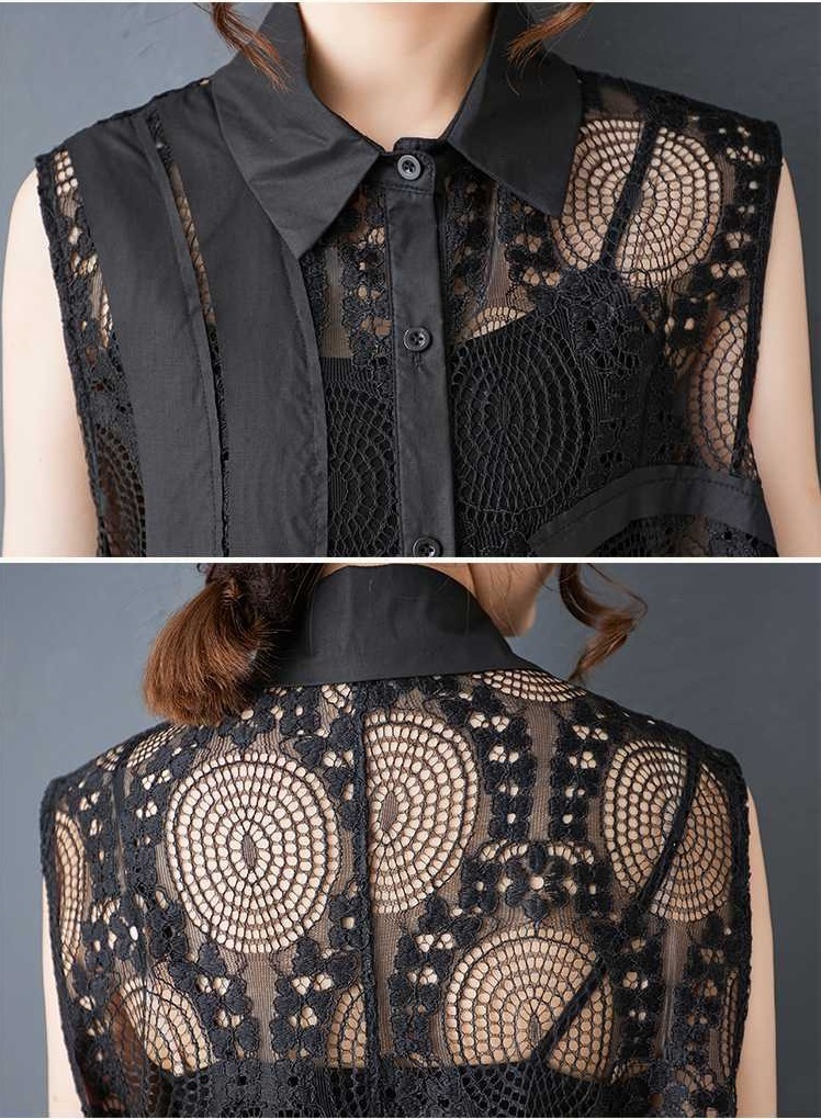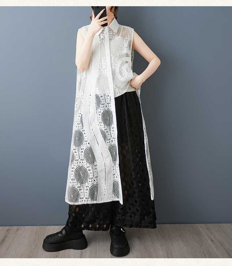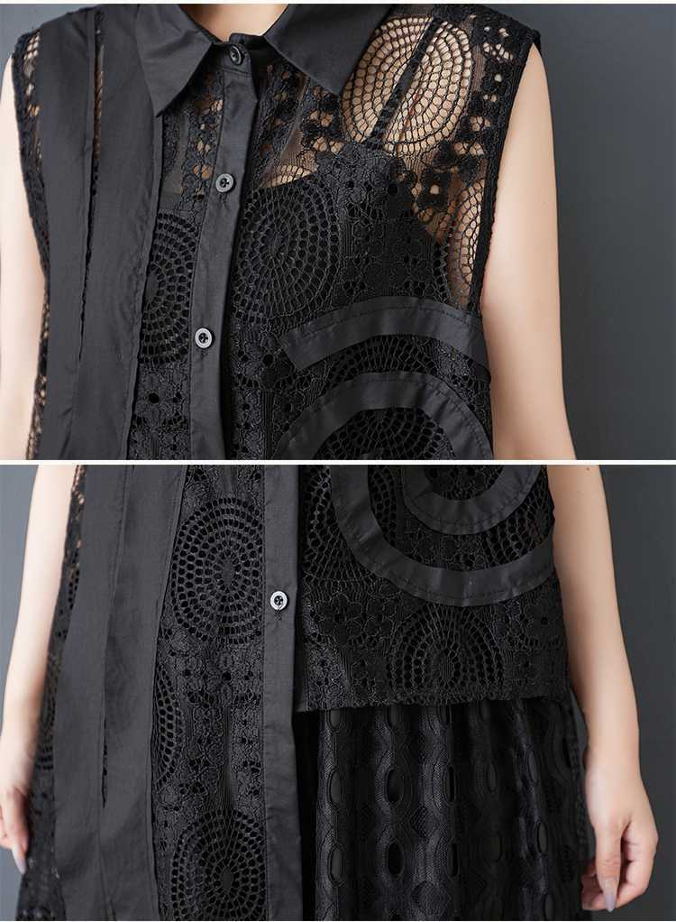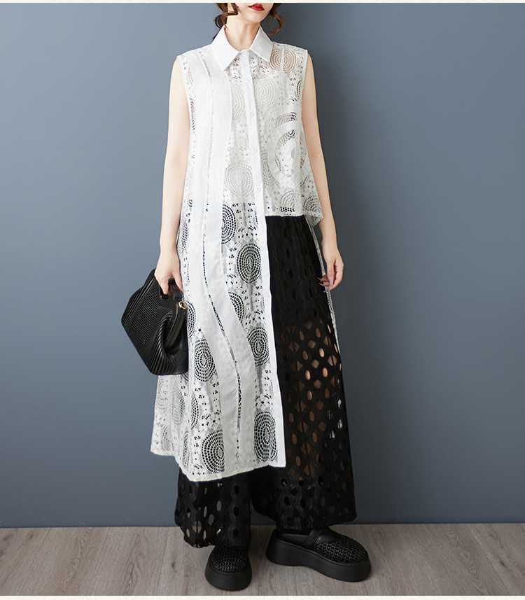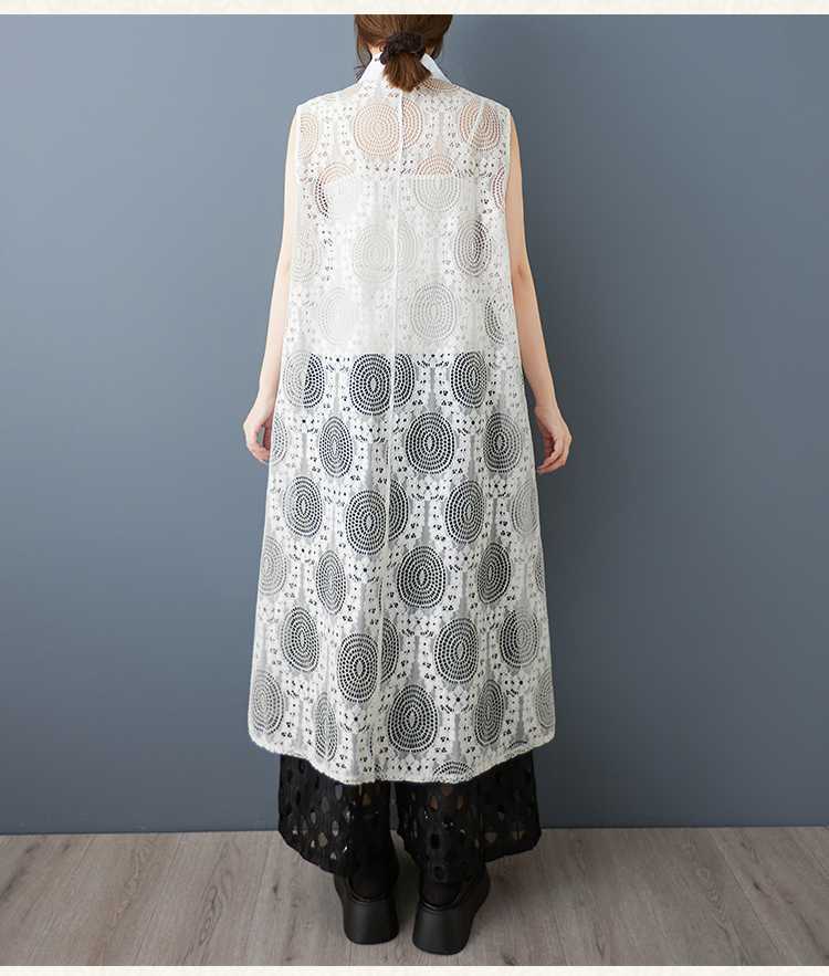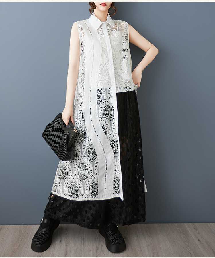 同梱1万円送料無料■上品 シースルーメッシュ シャツ ワンピース 重ね着スタイル ノースリーブ ワンピ ース 大きいサイズ 着痩せ■ホワイト