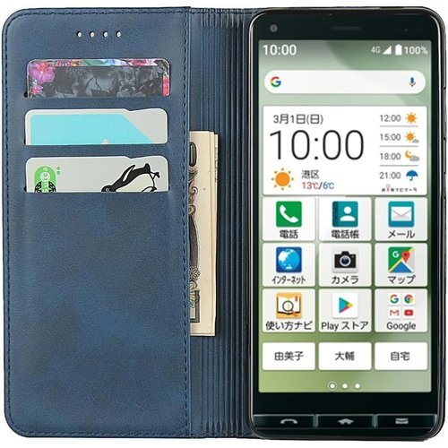 適用 basio4 kyv47 ケース 手帳型 京セラ a201kc カバー 手帳型 かんたんスマホ a201kc カバー 手帳型 a201kc ケース 手帳型 a001kc ケース 手帳型 a001kc スマホケース a001kc カバー カードスロット、キックスタンド レザー ネイビー 2217