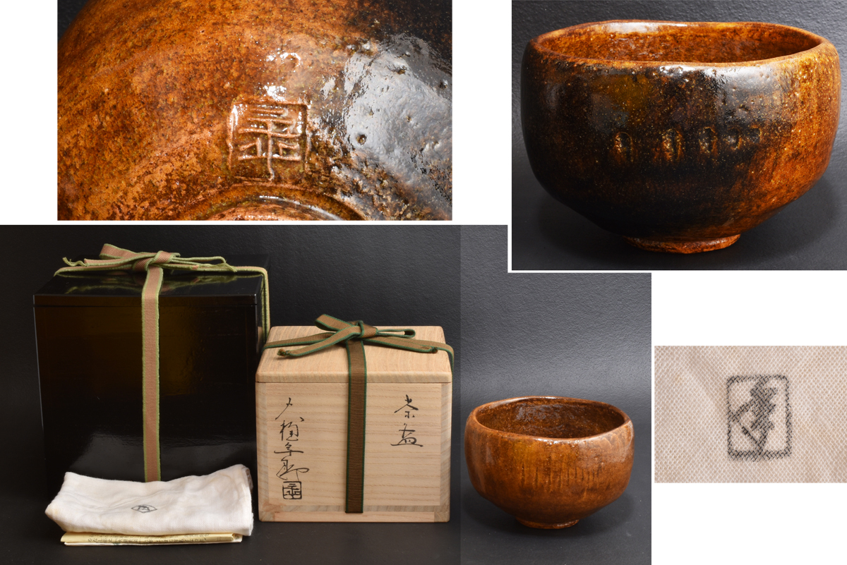 5826 10代 大樋長左衛門(年朗)飴釉 茶碗 無キズ 共箱