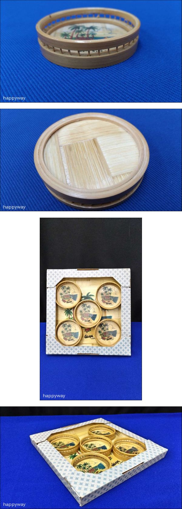 1円~スタート【未使用品】GUAM U.S.A グアムのお土産 風景バンブー トレイ & コースター×5個 セット 竹製品 竹細工 竹工芸80 | ||