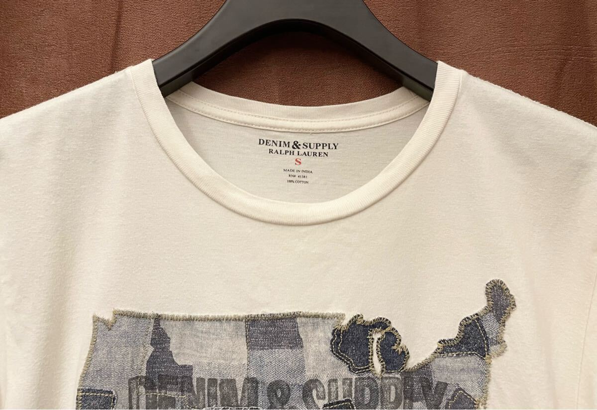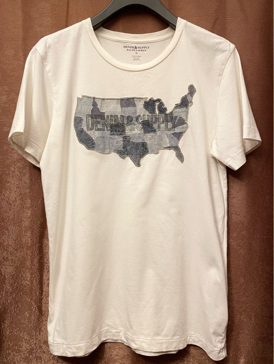 こちらはデニム生地をアメリカ大陸の形に取り付けたTシャツです。
