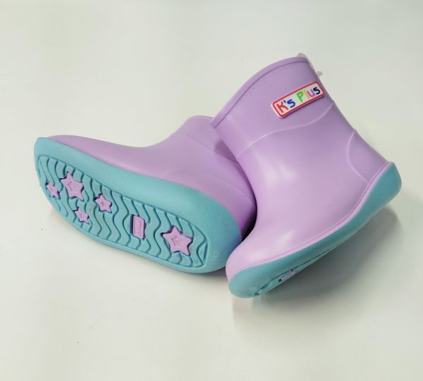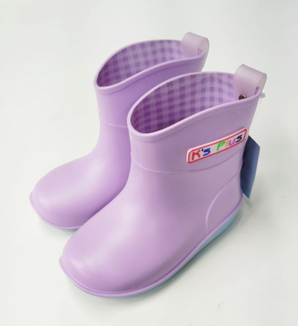 【履口縫製不良B品】キッズ ショート レインブーツ 16.0cm ラベンダー パープル レインシューズ 長靴 防水 防滑底 マット調 18003