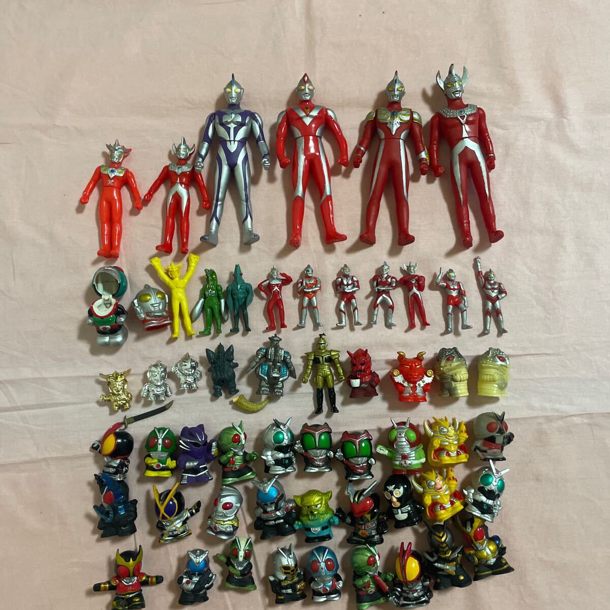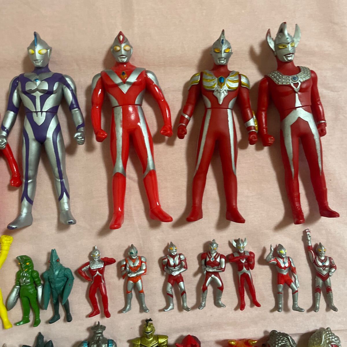 中古品です。ウルトラマンや仮面ライダーのソフビと指人形、ミニフィギュア をまとめて出品します。怪獣のフィギュアの尻尾が欠品です。また、仮面ライダーのライターケースがありますがライターが欠品しています。尻尾だけの怪獣もあります。レオとタロウのミニソフビが日本製ですが他は全て海外製だと思います。欠品有りのジャンク品として出品します。何か問題があっても返金は行いません。画像をよく見て判断してください。