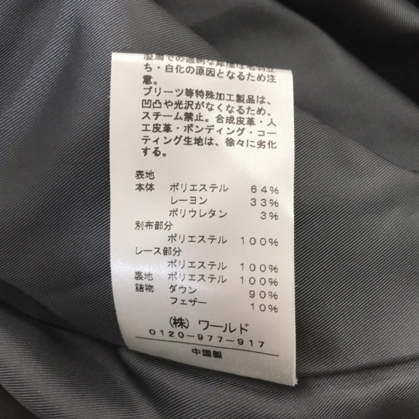 スーナウーナ SunaUna ダウンコート サイズ40 M - グレー レディース 長袖/レース/ビジュー/冬 美品 コート
