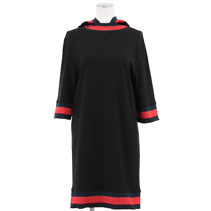 シリーズGUCCI グッチ ワンピース シェリーライン ストレッチジャージー フーディー パーカー ハーフスリーブ レディース S 黒 赤 紺 伊製
