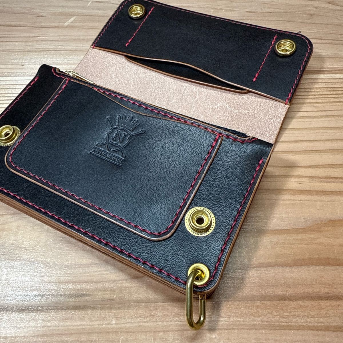 フラップ裏にアテ革とカードポケットを追加したカスタムモデルです。