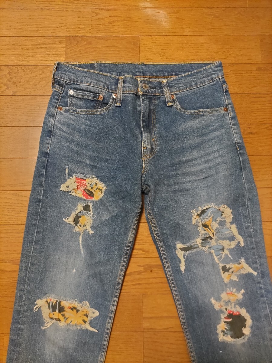 LEVIS リーバイス 511 アロハ柄生地 リメイククラッシュデニム ストレッチデニムパンツ ジーンズ  27062500000004