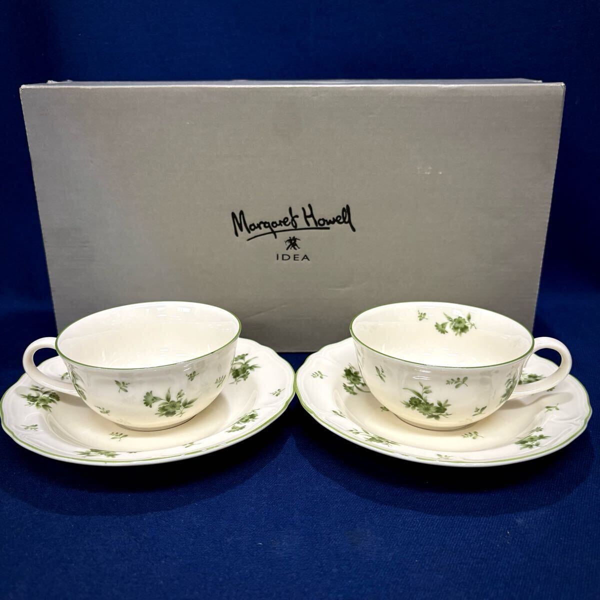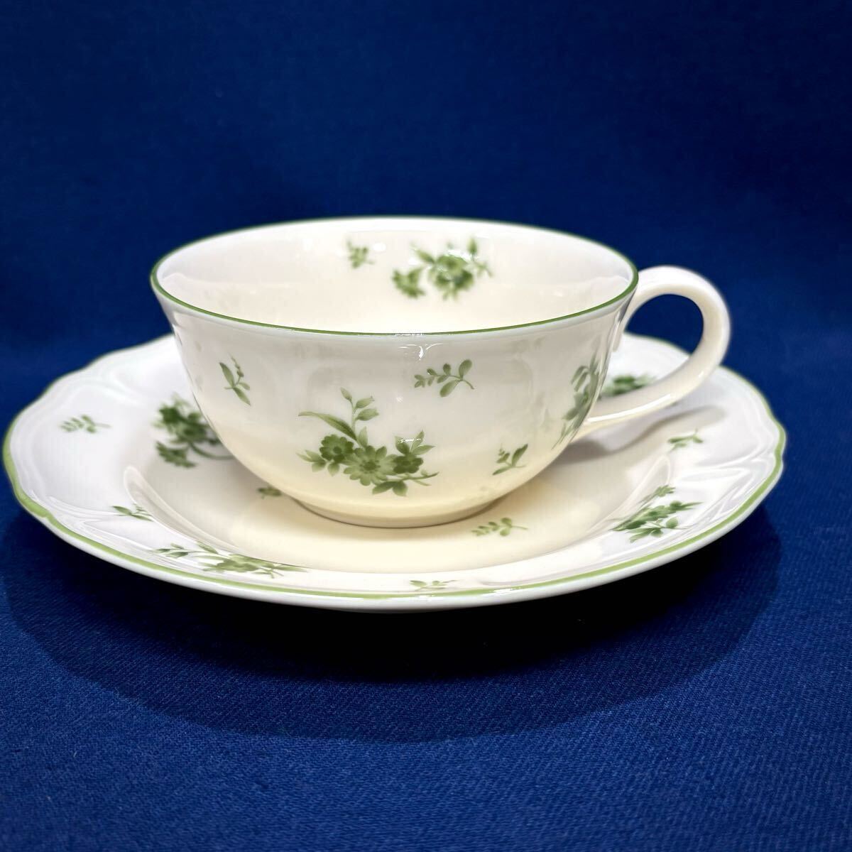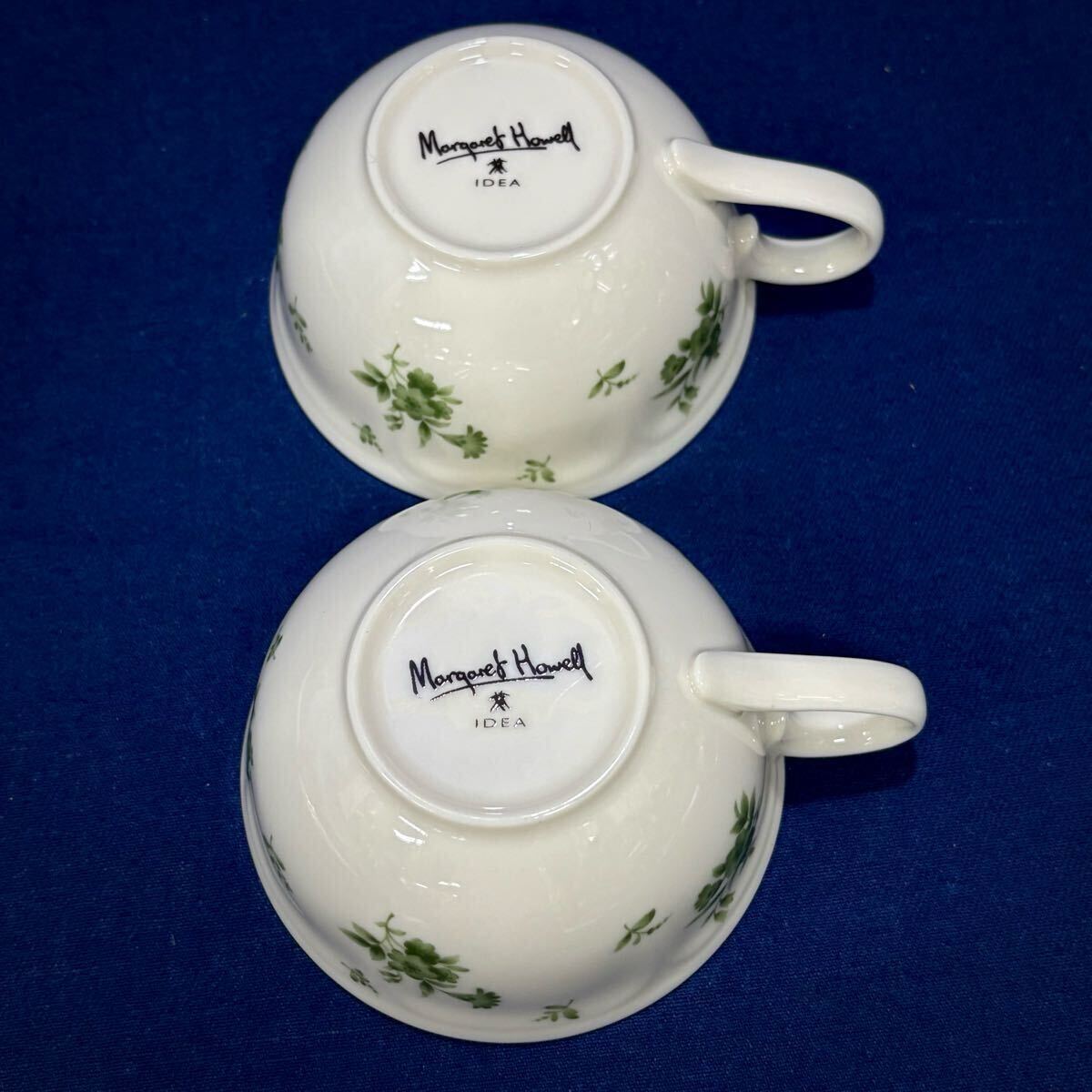 未使用 前畑陶器 マーガレットハウエル ペア カップ ソーサー グリーン 花柄 コーヒーティー兼用 洋食器 レトロ 当時物 (06267E