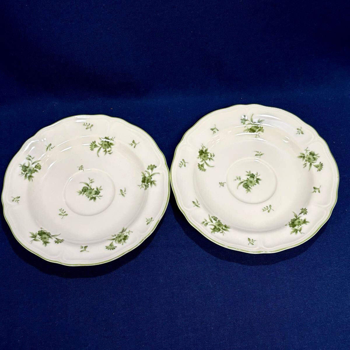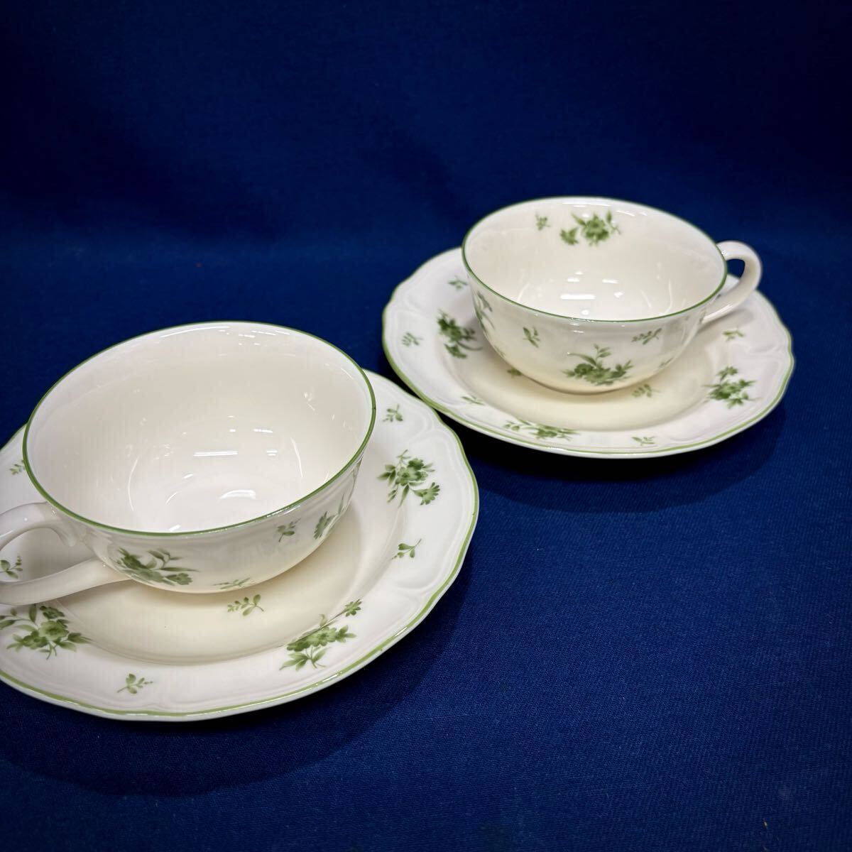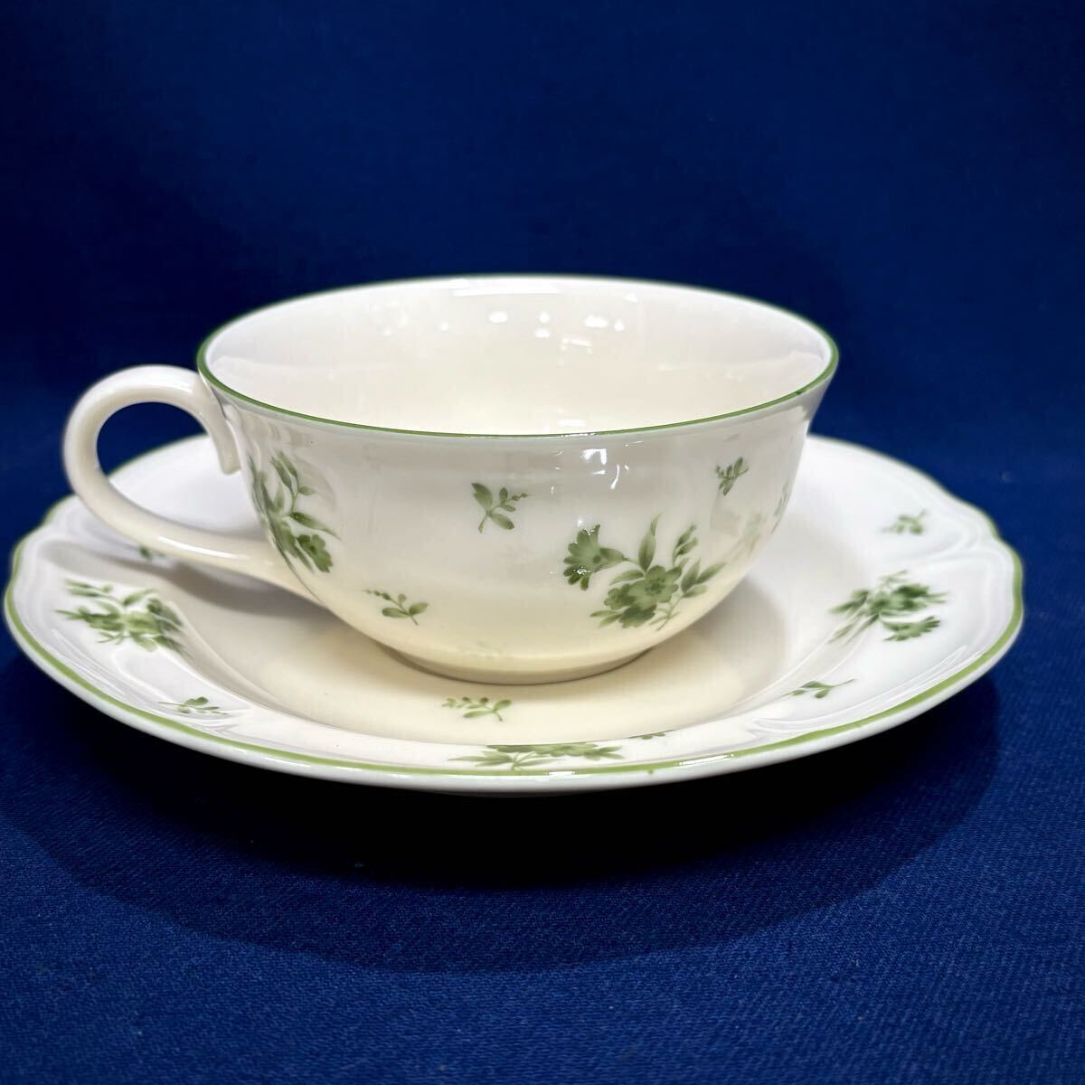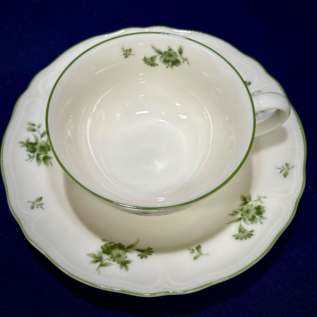 未使用 前畑陶器 マーガレットハウエル ペア カップ ソーサー グリーン 花柄 コーヒーティー兼用 洋食器 レトロ 当時物 (06267E