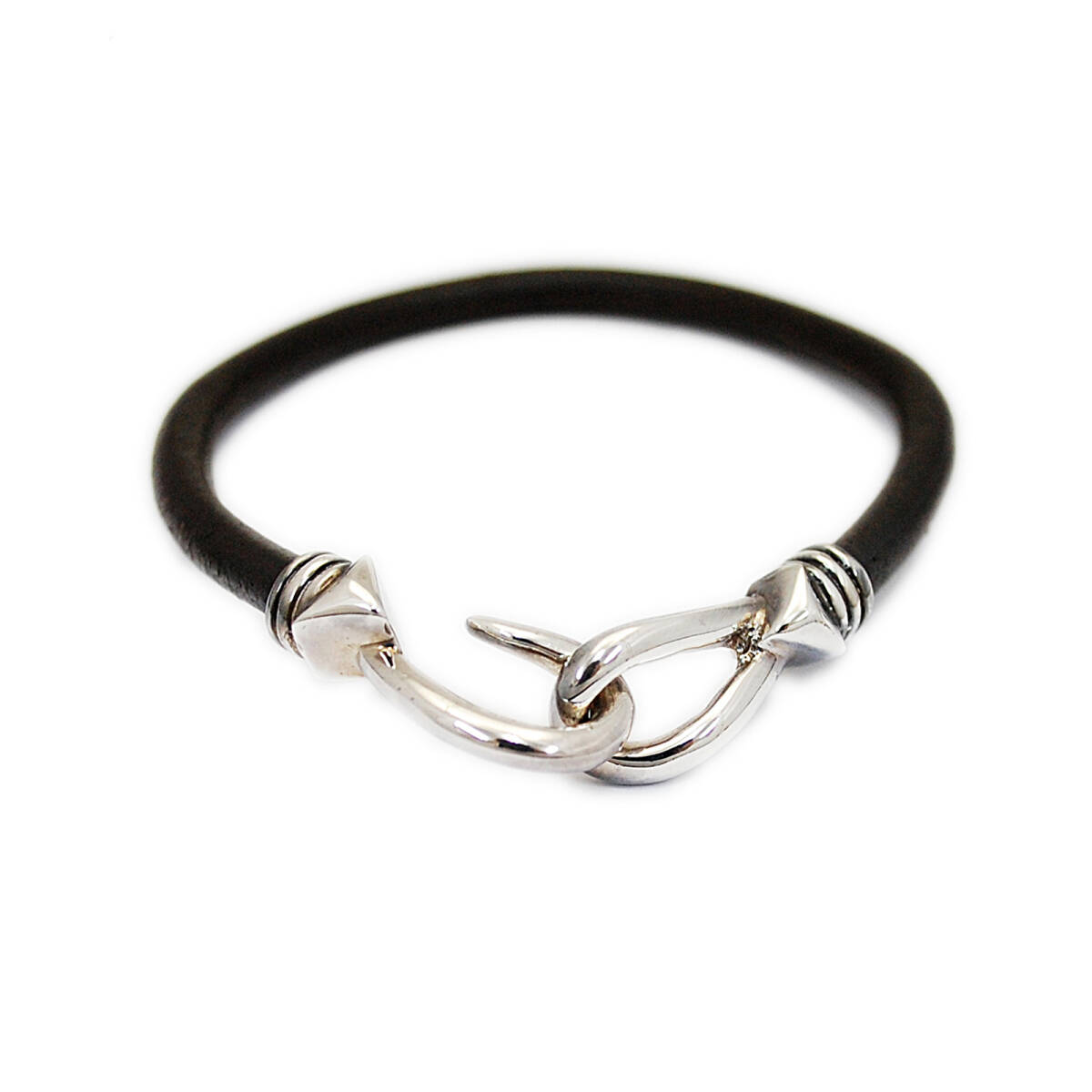 フックロックブラウンレザー925シルバーブレスレット 925刻印あり GS-BL019BR