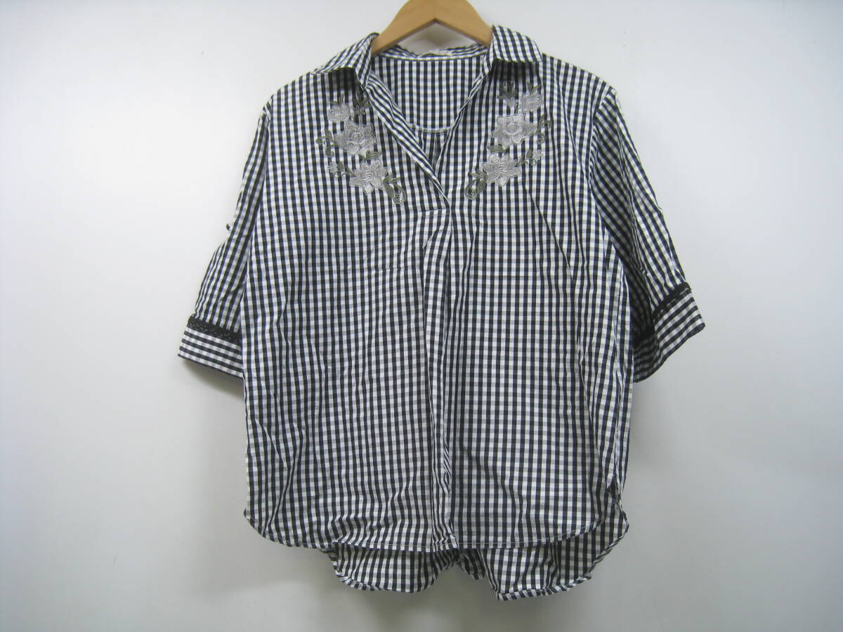 ■ブランド・商品名:axes femme アクシーズファム チェックシャツ 7分袖 花 フラワー TY84X48 黒×白 ブラック ホワイト サイズF