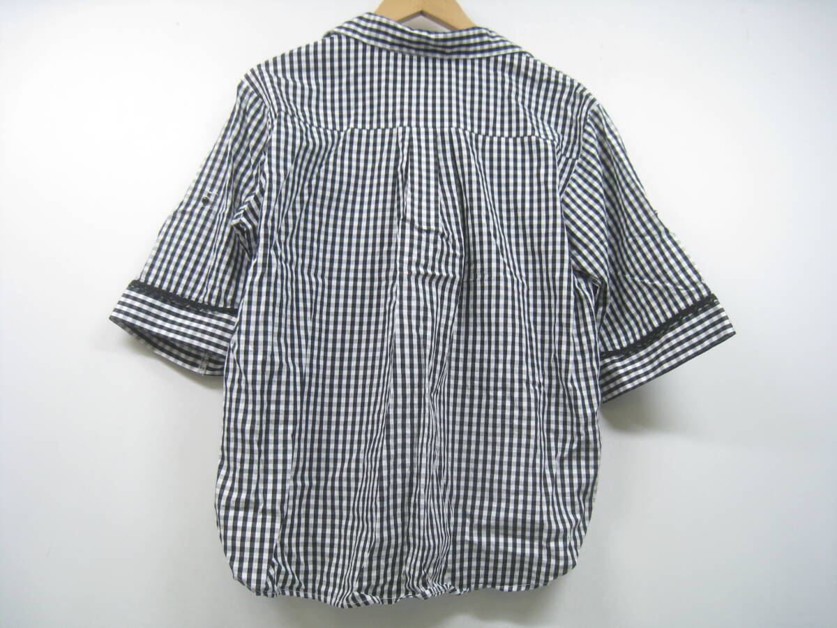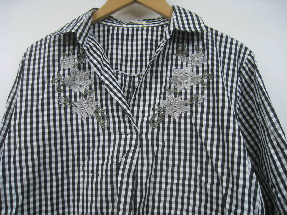 axes femme アクシーズファム チェックシャツ 7分袖 花 フラワー TY84X48 黒×白 ブラック ホワイト サイズF