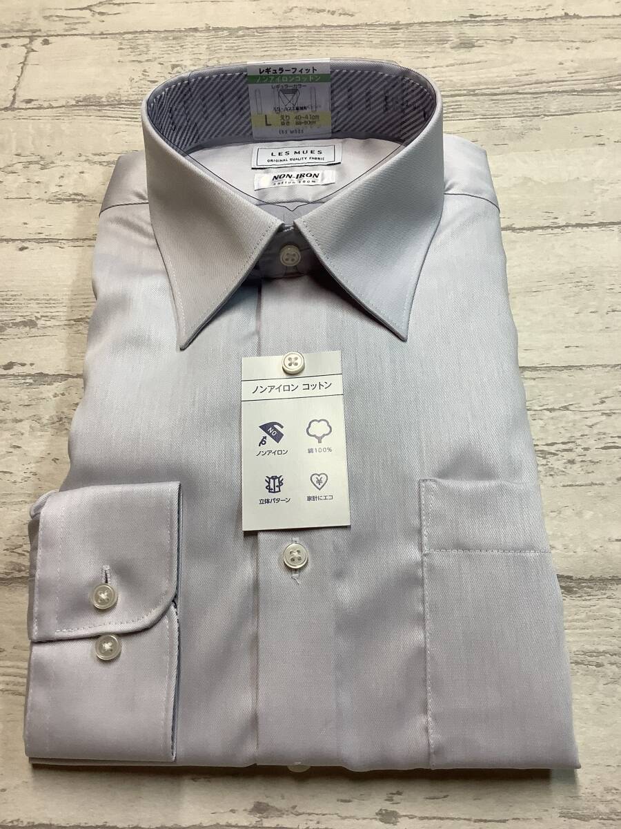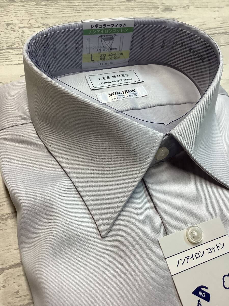 新品未使用41-90 長袖Lサイズ  ★綿100% ★レギュラーカラードレスシャツ ノンアイロンコットン ★グレー
