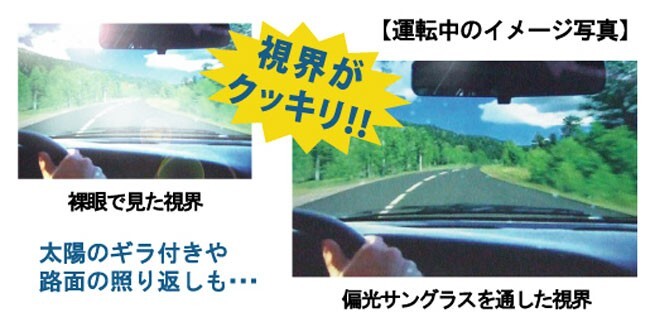 レンズは「偏光レンズ」仕様。ギラギラ乱反射を抑制しますのでドライブ、フィッシングなど各スポーツシーンで大活躍