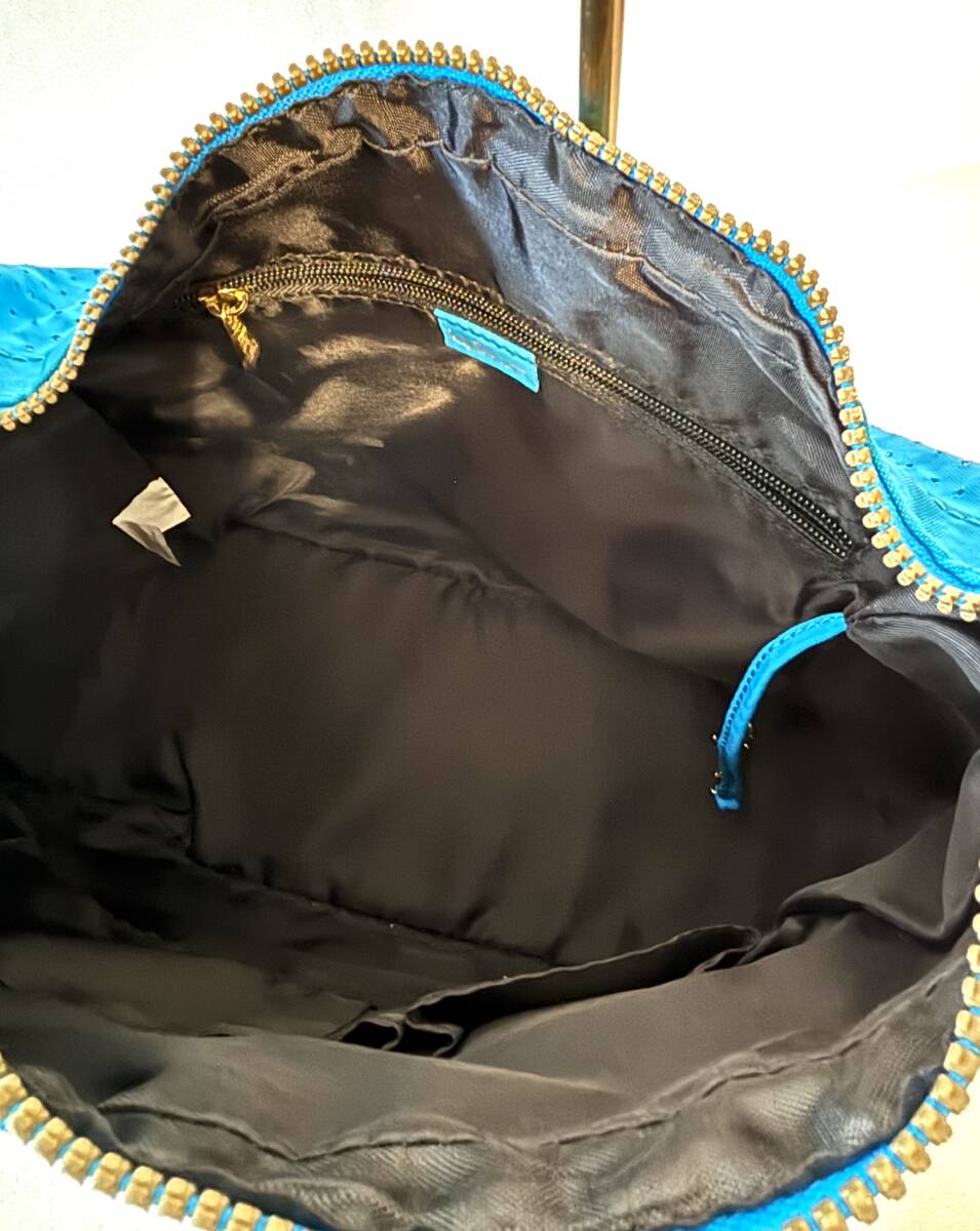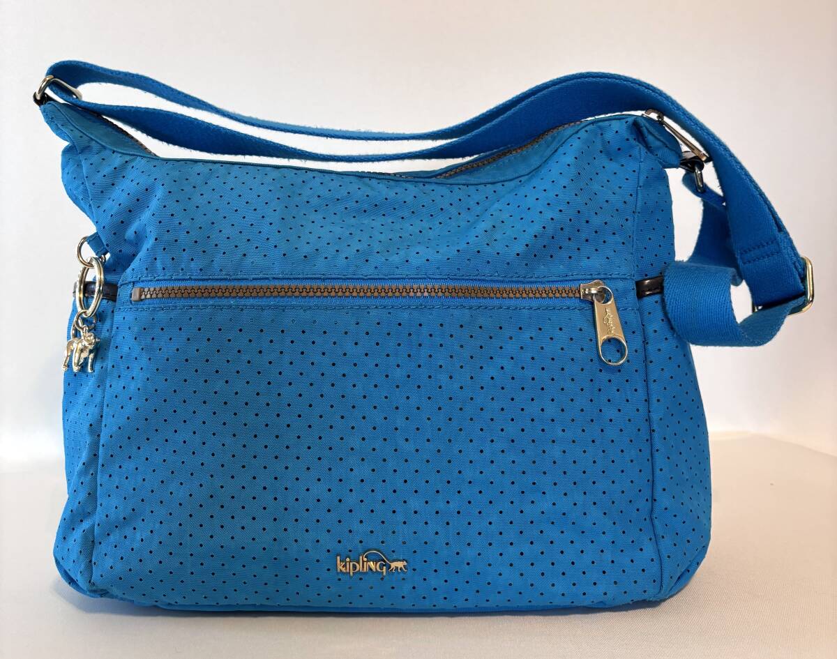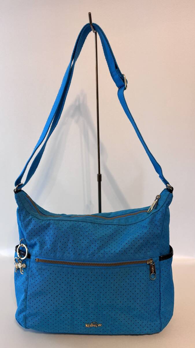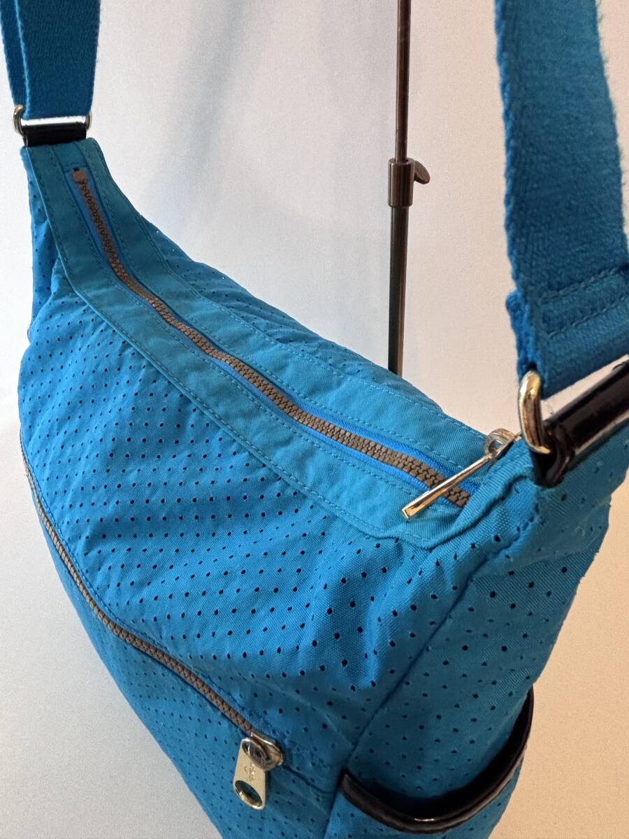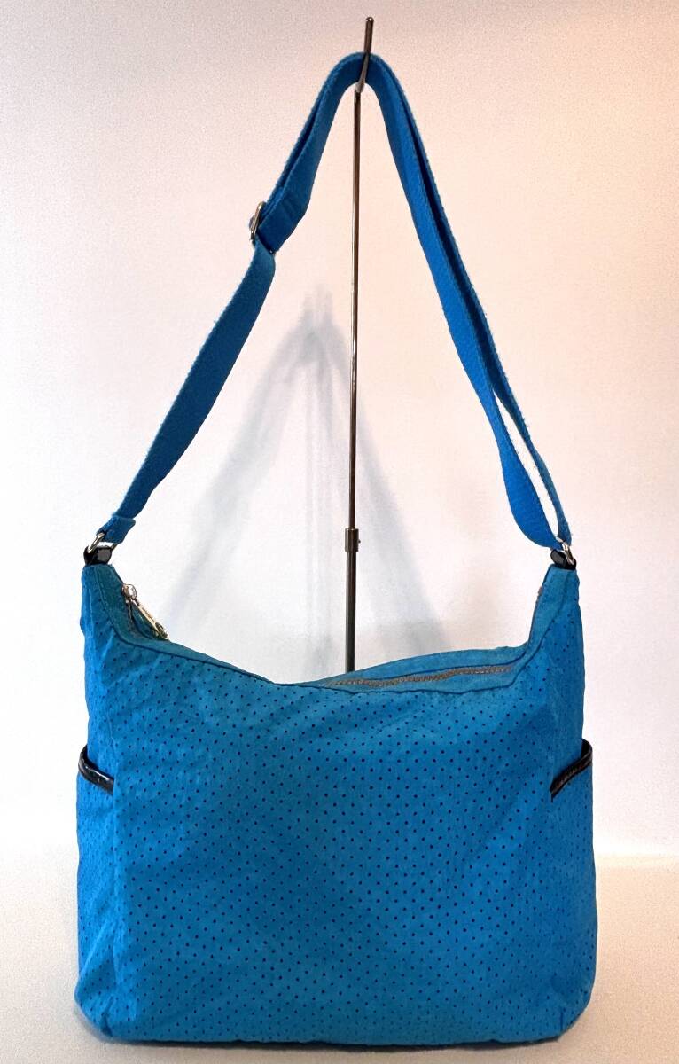 商品に ついて | ☆パンチングデザインのショルダーバッグターコイズブルーの鮮やかなカラーな ので、夏の季節にピッタリです。 〇デザイン:(外側) ファスナーポケットx1 両サイドポケット (内側) ファスナーポケットx1 ポケット大 ポケット小 ペンポケット 〇サイズ:W28xH25xD14 間口約33.5cm ※外側底部分に多少汚れがあります。 (画像でご確認ください) |