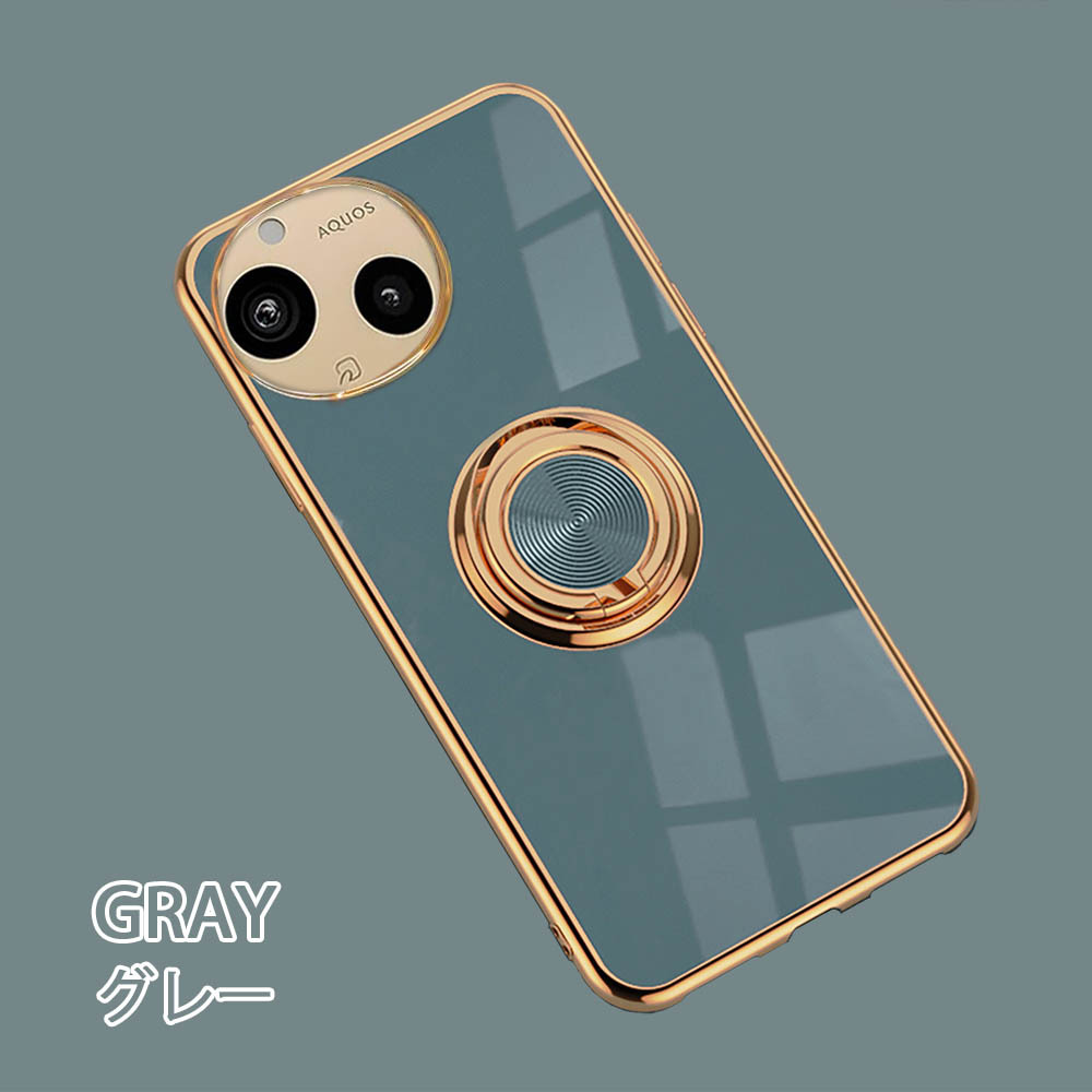 AQUOS sense9 ケース シンプル TPU SHG14 A405SH SHM29 SH53E 青 スマホケース バンパー リング付 カバー 耐衝撃 グレー 灰 メッキ 送料無
