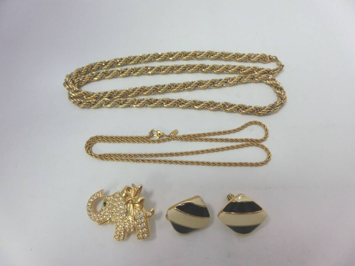 | ■□78278 MONET モネ ネックレス ブローチ イヤリングなど 4点セット まとめ ゴールドカラー アクセサリー アンティーク□■ | ||