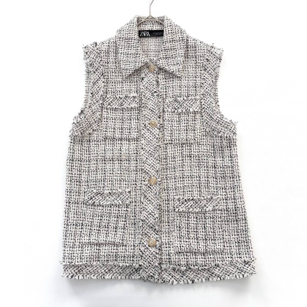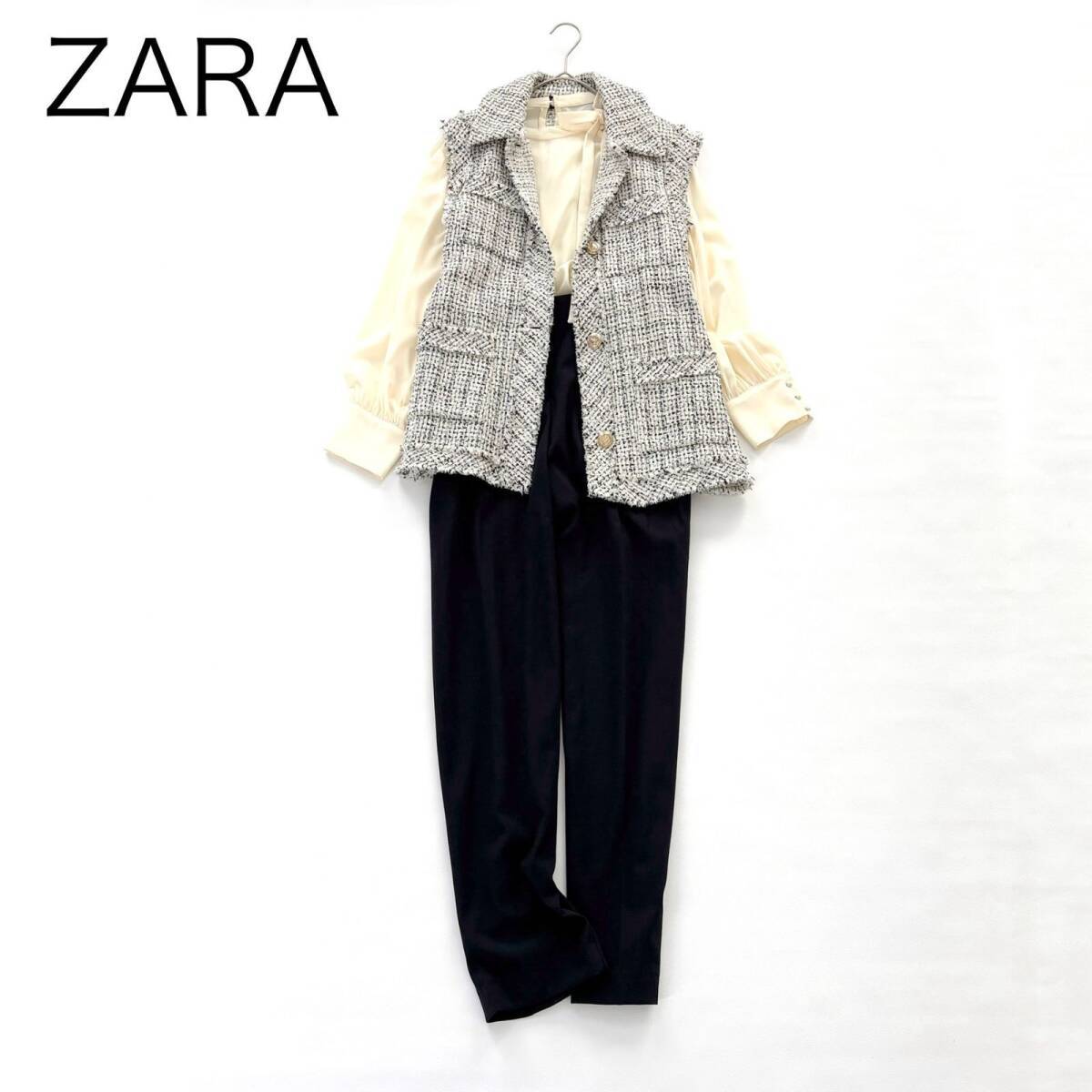 新品あり ジレ&ハイウエストセンタープレスパンツ 金ボタン スラックス ザラ ハイウエスト ツイード ベスト サイドリボンブラウス 長袖ブラウス シャツ シアーシャツ