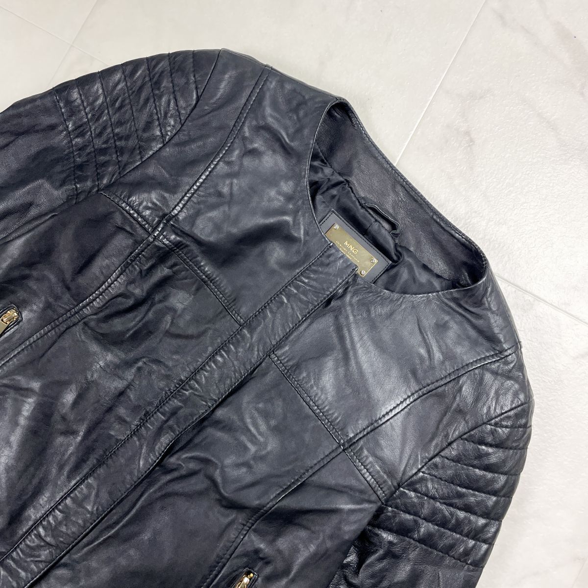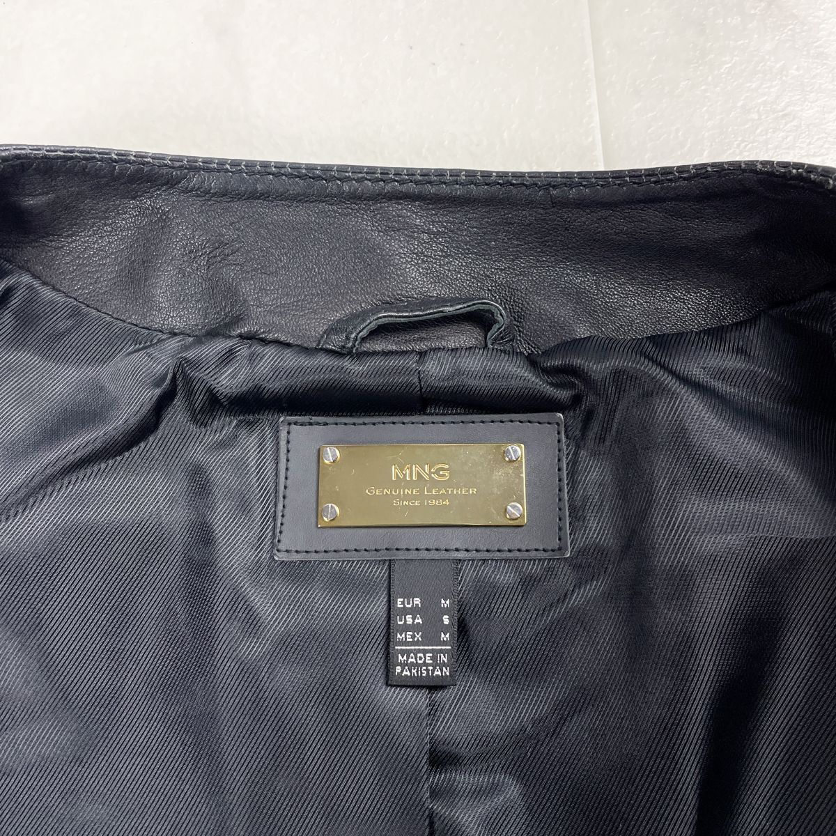 美品 MNG MANGO マンゴ 羊革 シープレザーノーカラージャケット 総裏 レディース ブラック 黒 サイズM*CD1384