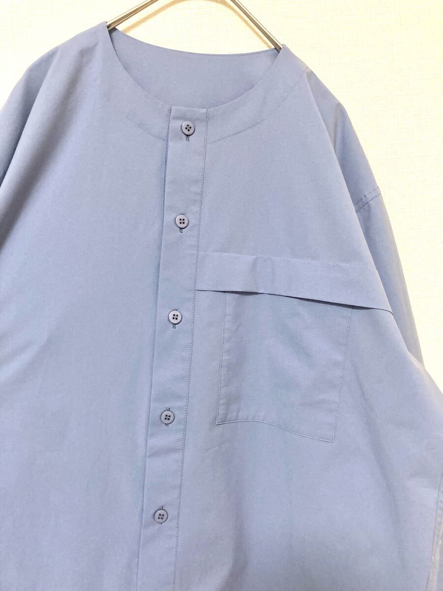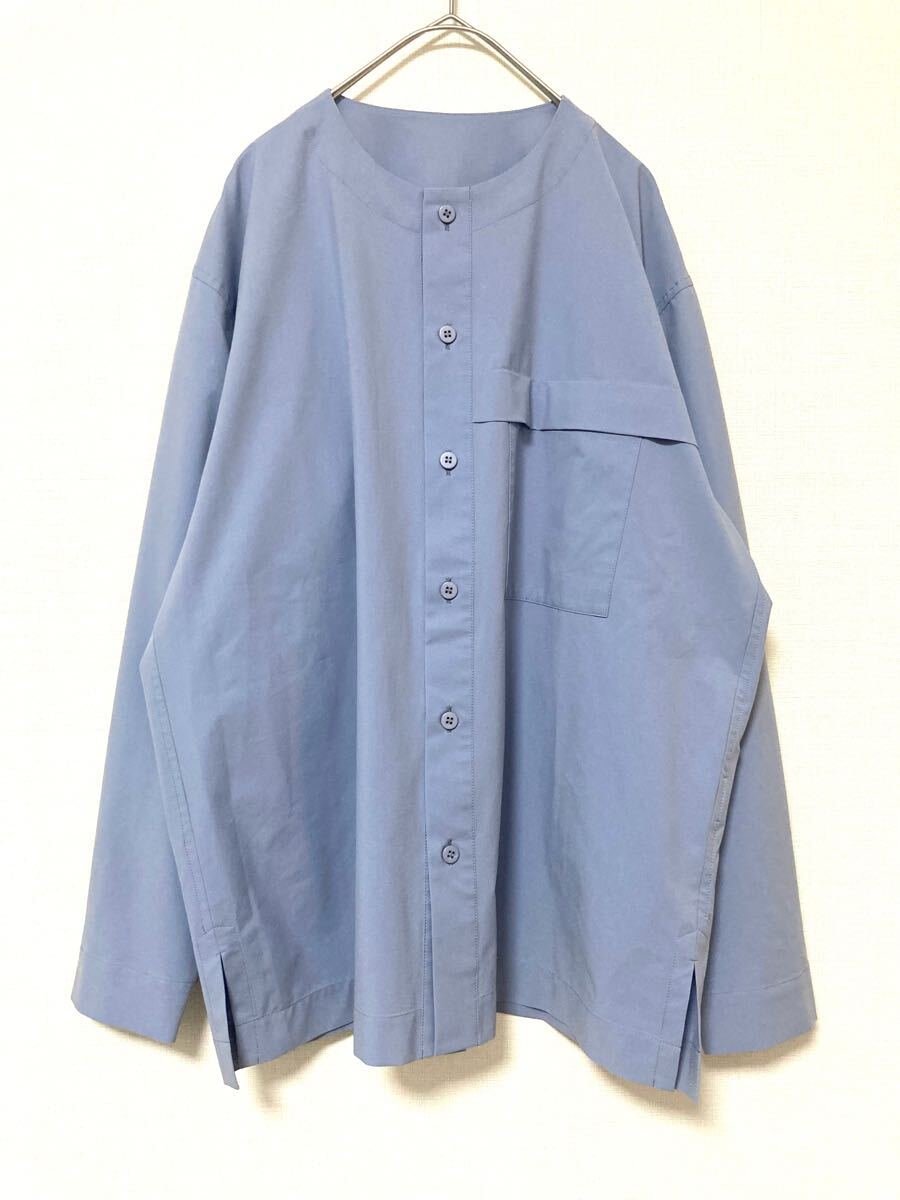 イッセイミヤケのミニマルなデザインのノーカラーシャツです。