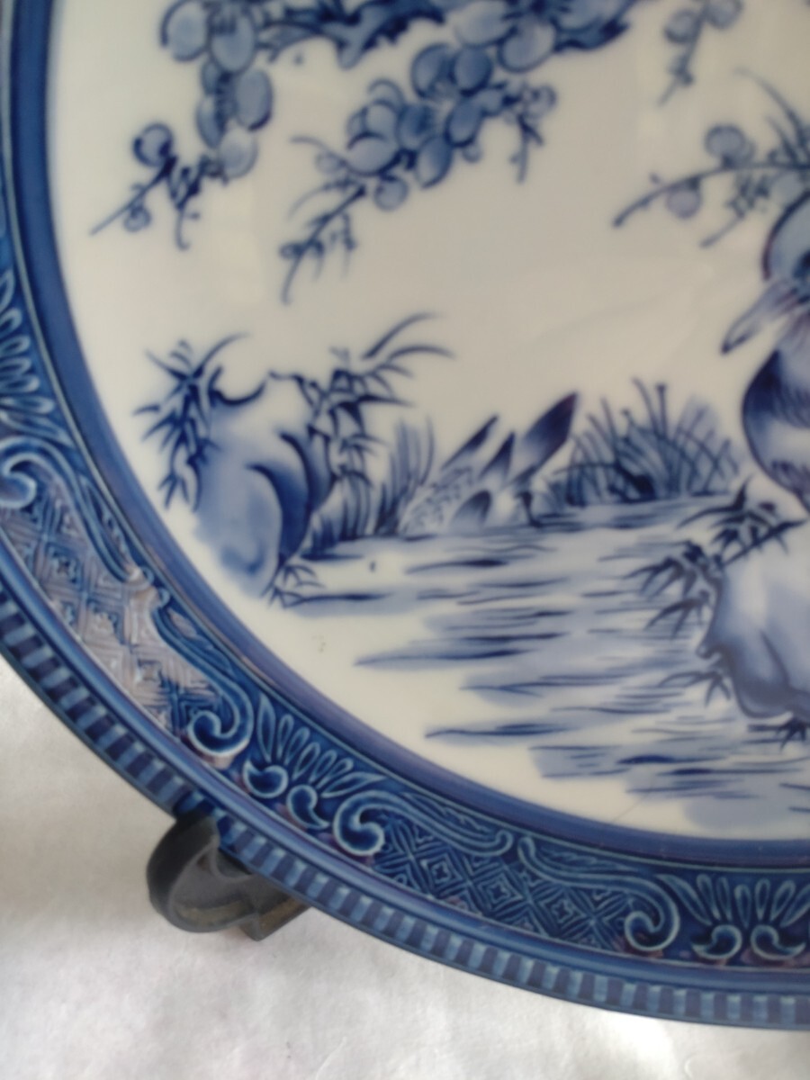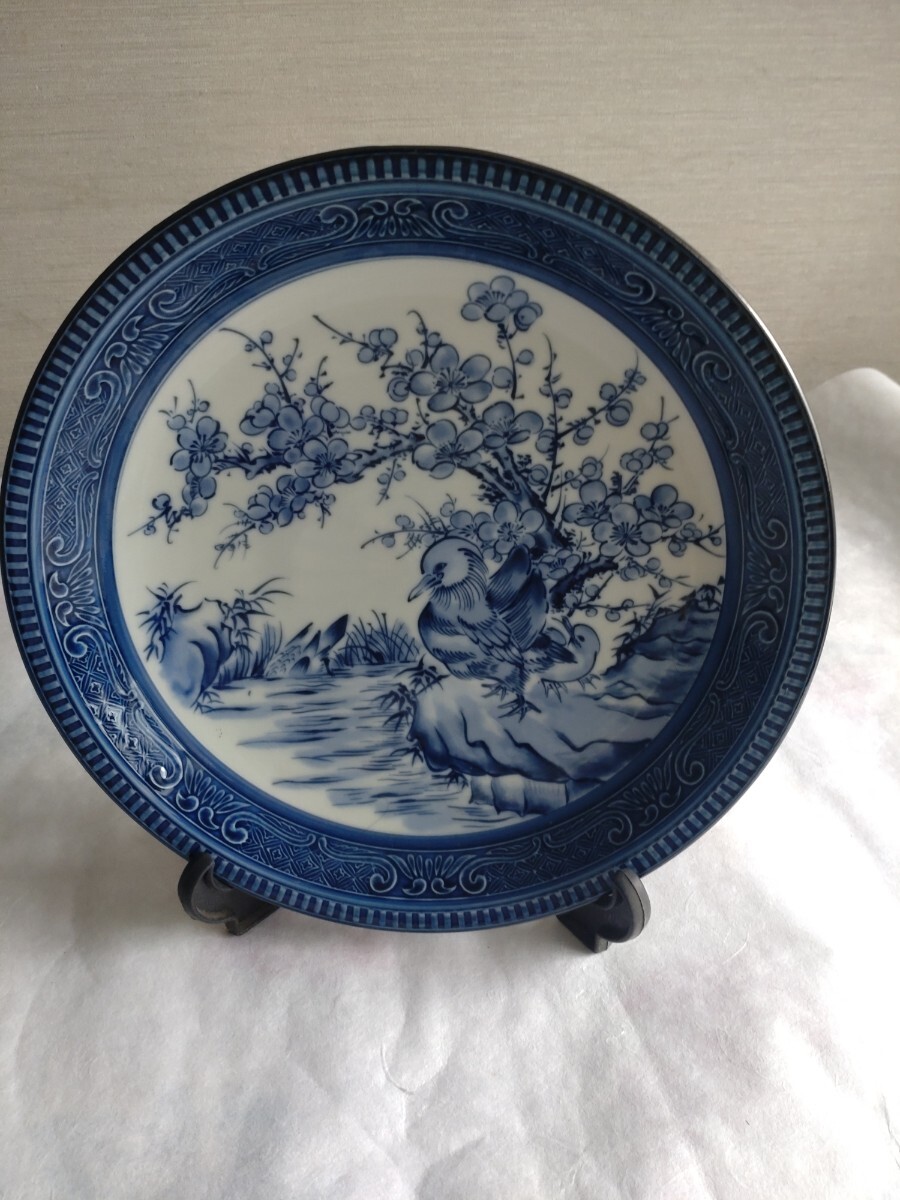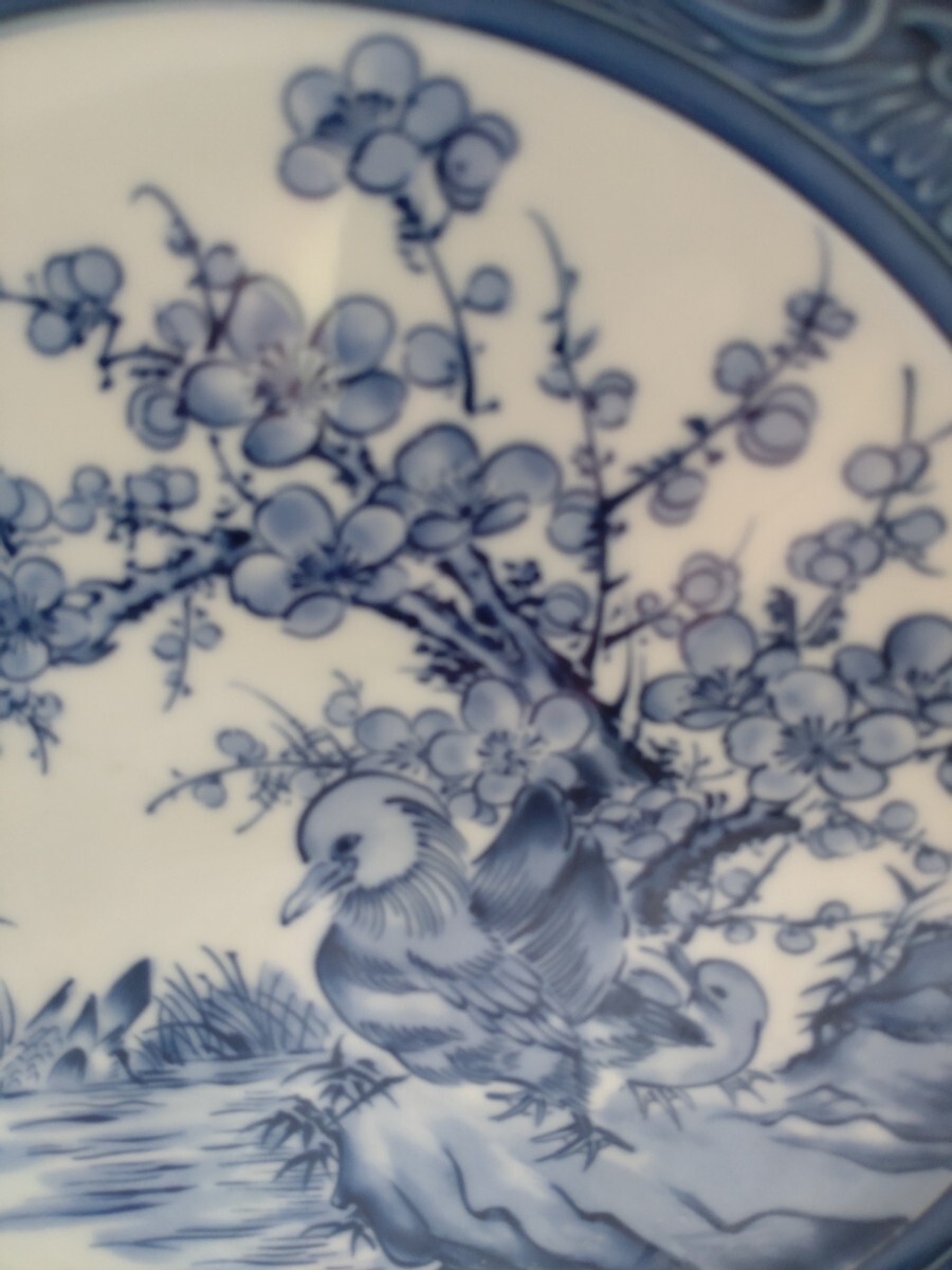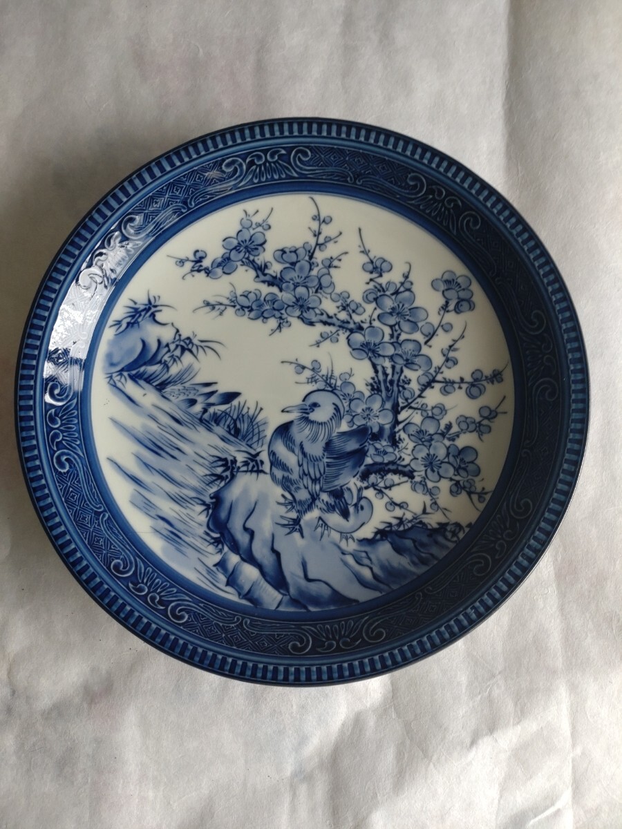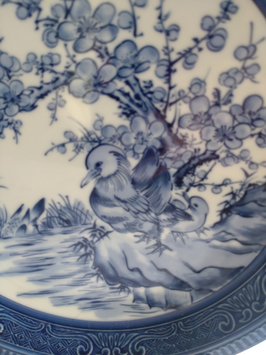 有田焼の夢一郎作 大皿になります 直径約28cm 高さ4.5cm 鳥と梅が描かれた綺麗な絵皿です。