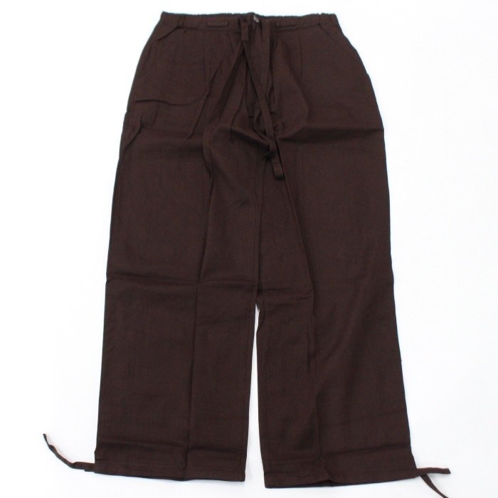 〔ズボン〕 Wタック/ フックホルダー左右各1/ ウエスト後ゴム入/ ウエスト前紐調節//右後ボタン付きポケット/ 前ボタン、ファスナー付/ 裾紐調節