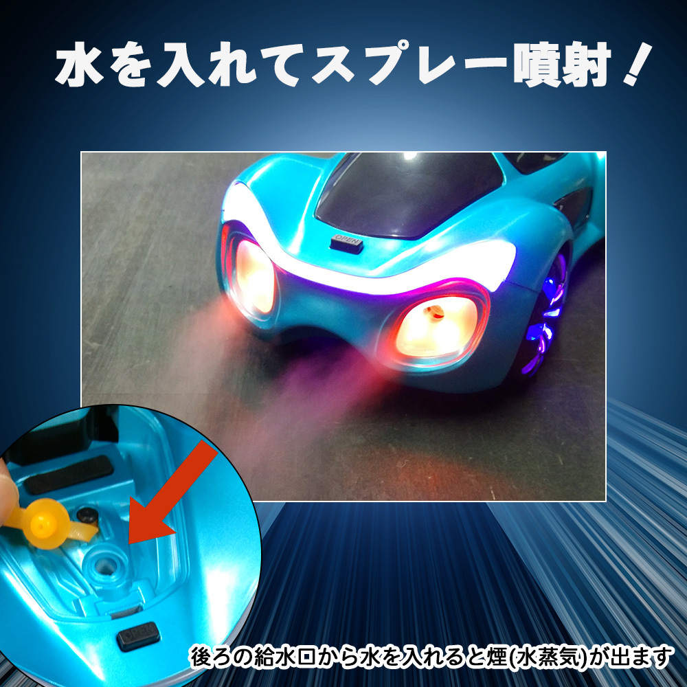 (青) 光る! 音が出る! 全方向 ドライブ EVカー ラジコン 多方面走行 360度 回転 スモーク 煙 車 電気自動車 充電 子供 人気 楽しい EV-CAR