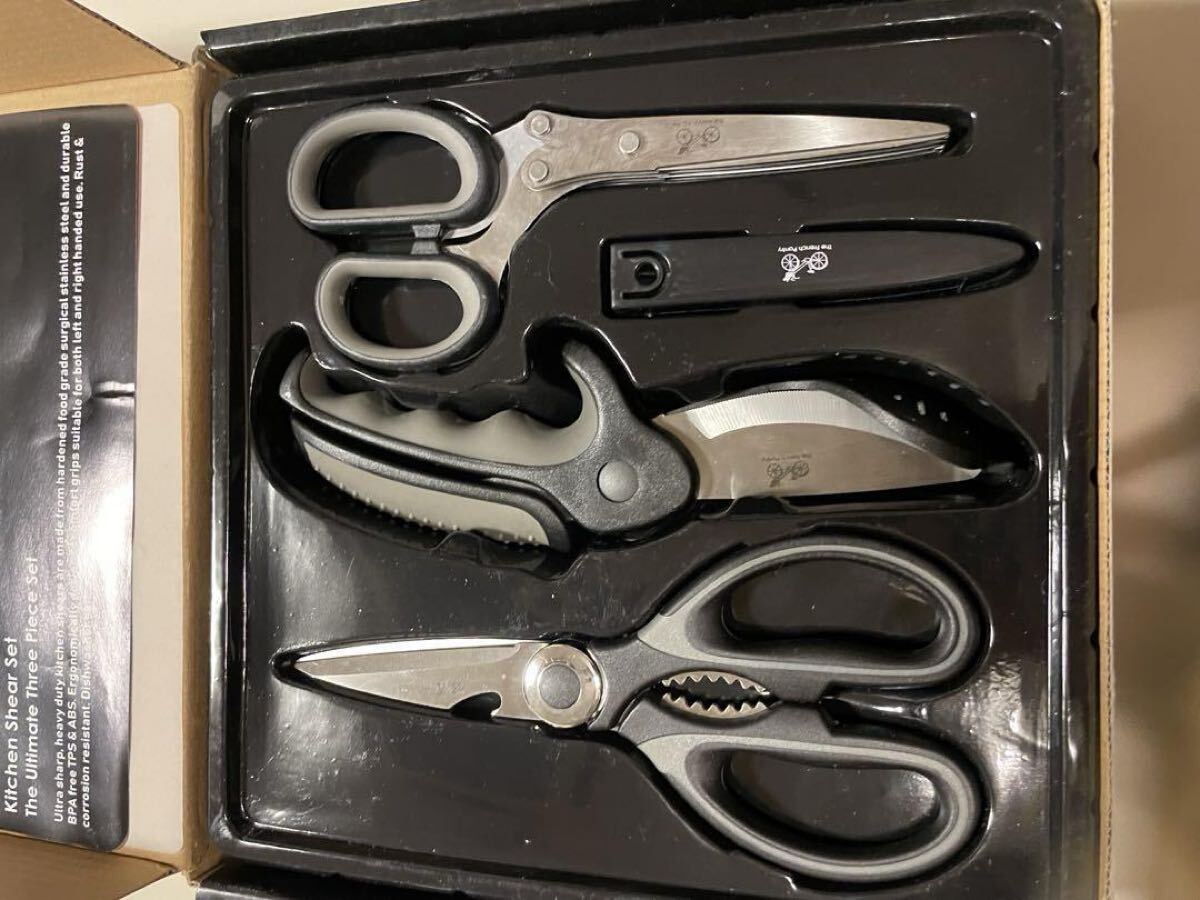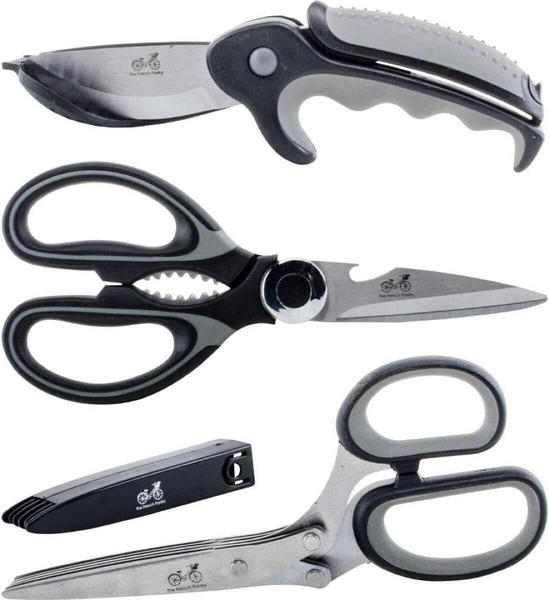 キッチン ハサミ セット - 3個のハサミを特別セットにしました | 通常のキッチンハサミ| 2枚刃のサラダ用ハサミ | ハーブ専用のマルチブレード ハサミ