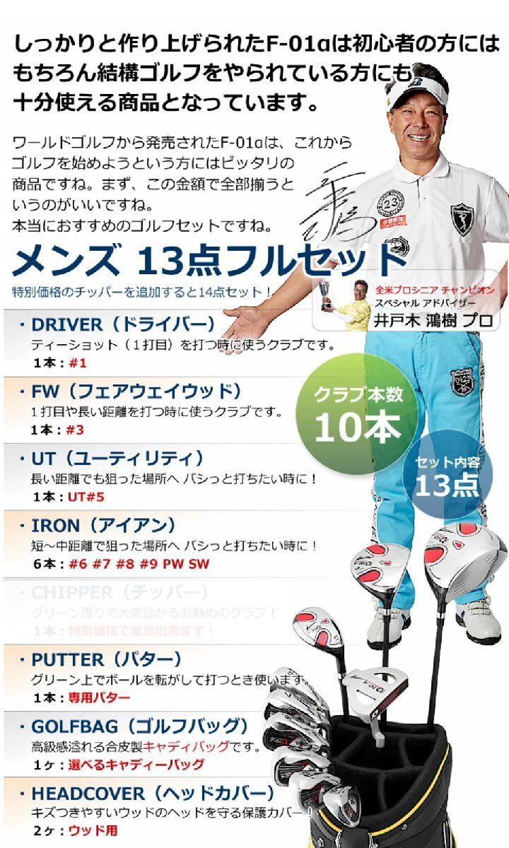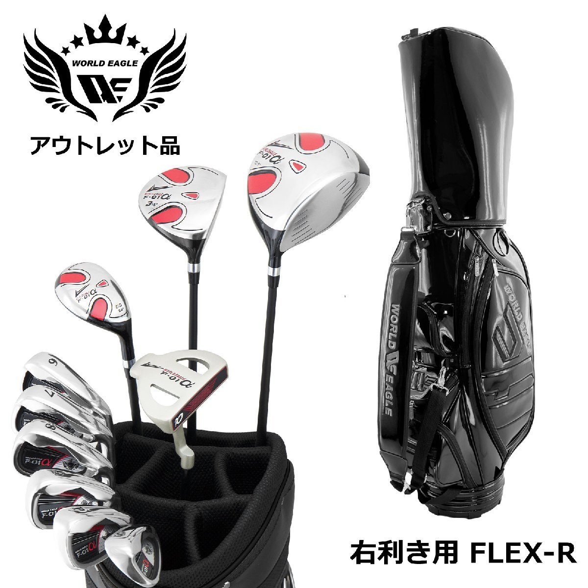 アウトレット品 メンズ ワールドイーグル クラブセット F-01 13点 右用 R キャディバッグ CBR5 Jブラック 爆買