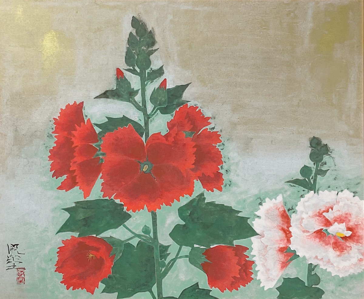 富取風堂(1892-1983) 日本画10号『立葵』青坪鑑シール●院展評議員●蔵:東京国立近代美術館