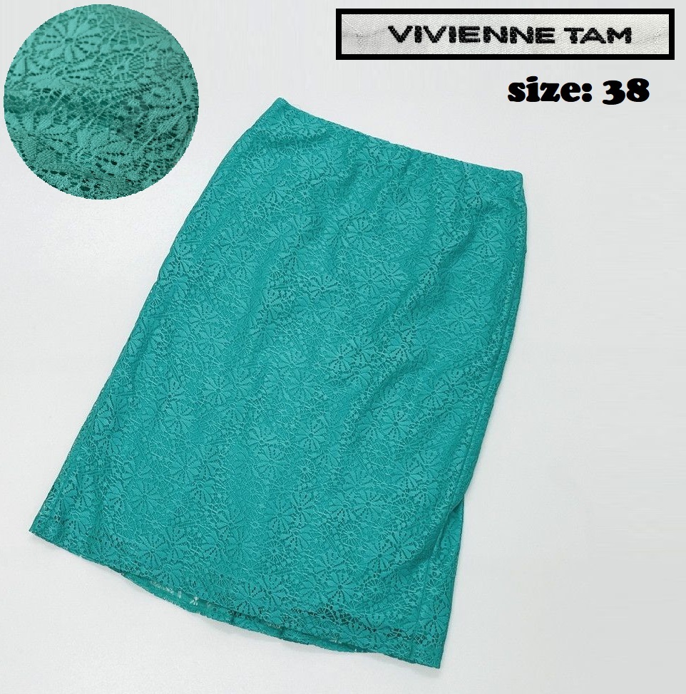 VIVIENNE TAM /38/ グリーン タイトスカート 日本製 花柄 刺繍レース ペンシル 生地ナイロン混 春夏 マツオ センソユニコ ヴィヴィアンタム