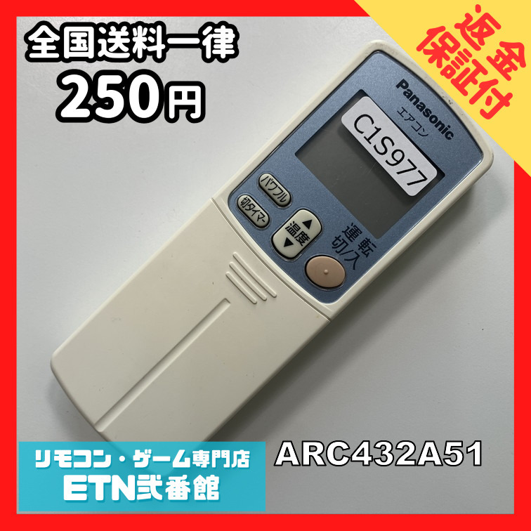 C1S977 【送料250円】エアコン リモコン / Panasonic パナソニック ARC432A51 動作確認済み★即発送★ 冷房 暖房