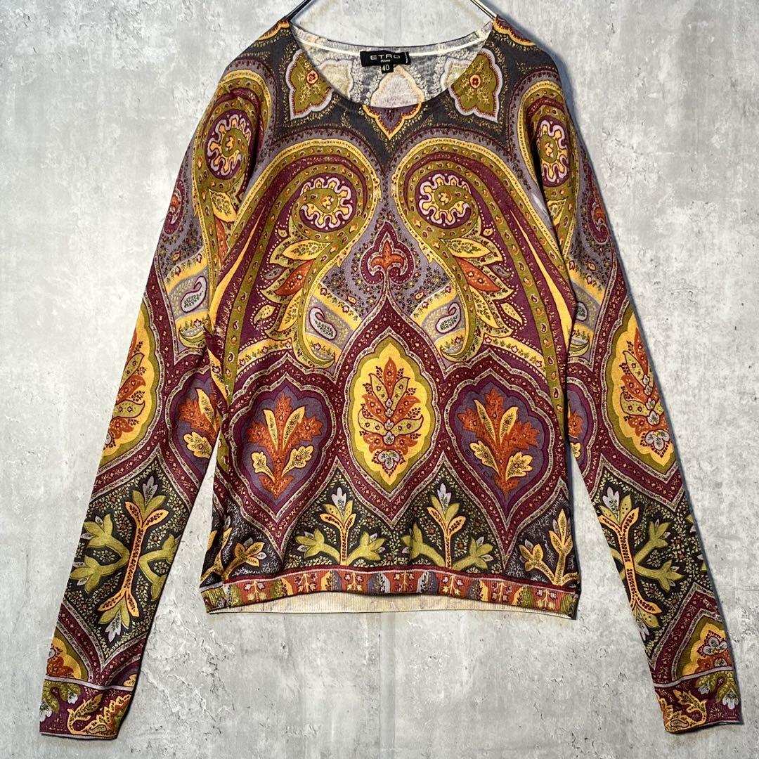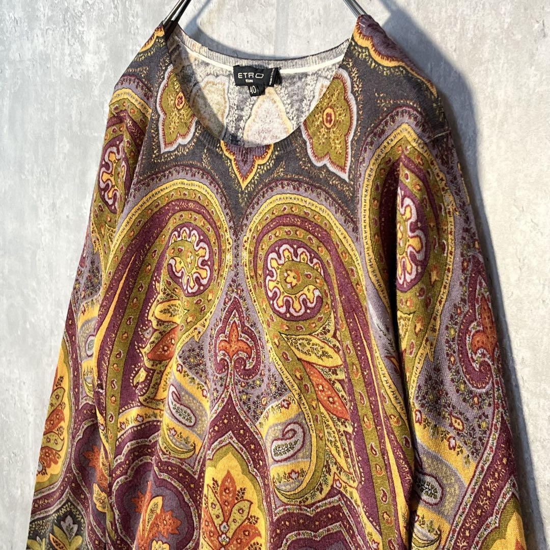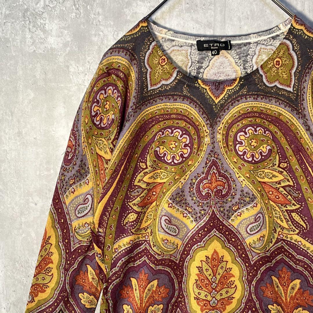 好配色☆ ETRO エトロ シルク&カシミヤニット 大ペイズリー柄 40サイズ
