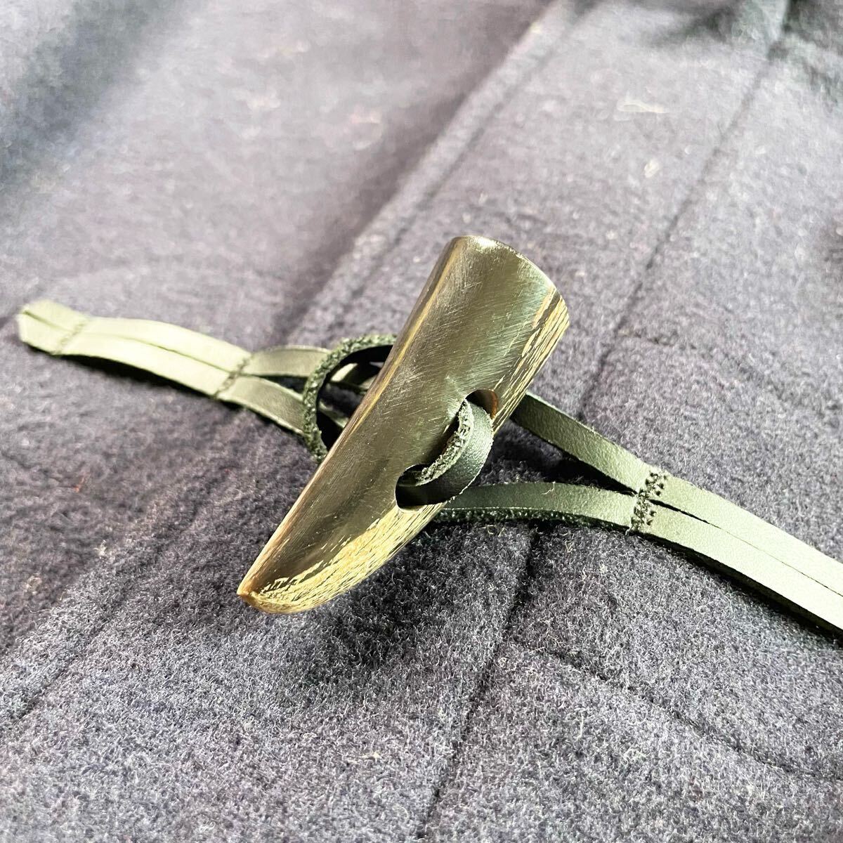 ウッドトグル&牛革ループ: プレミアムなディテール。