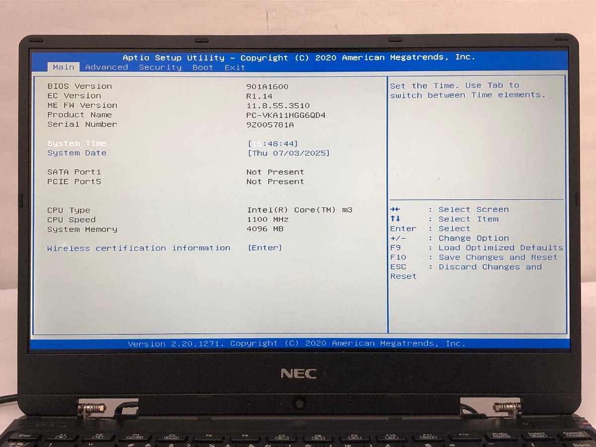ジャンク/ NEC PC-VKA11HGG6QD4 Intel Core m3-8100Y メモリ4.1GB ストレージ無し 【K17448】