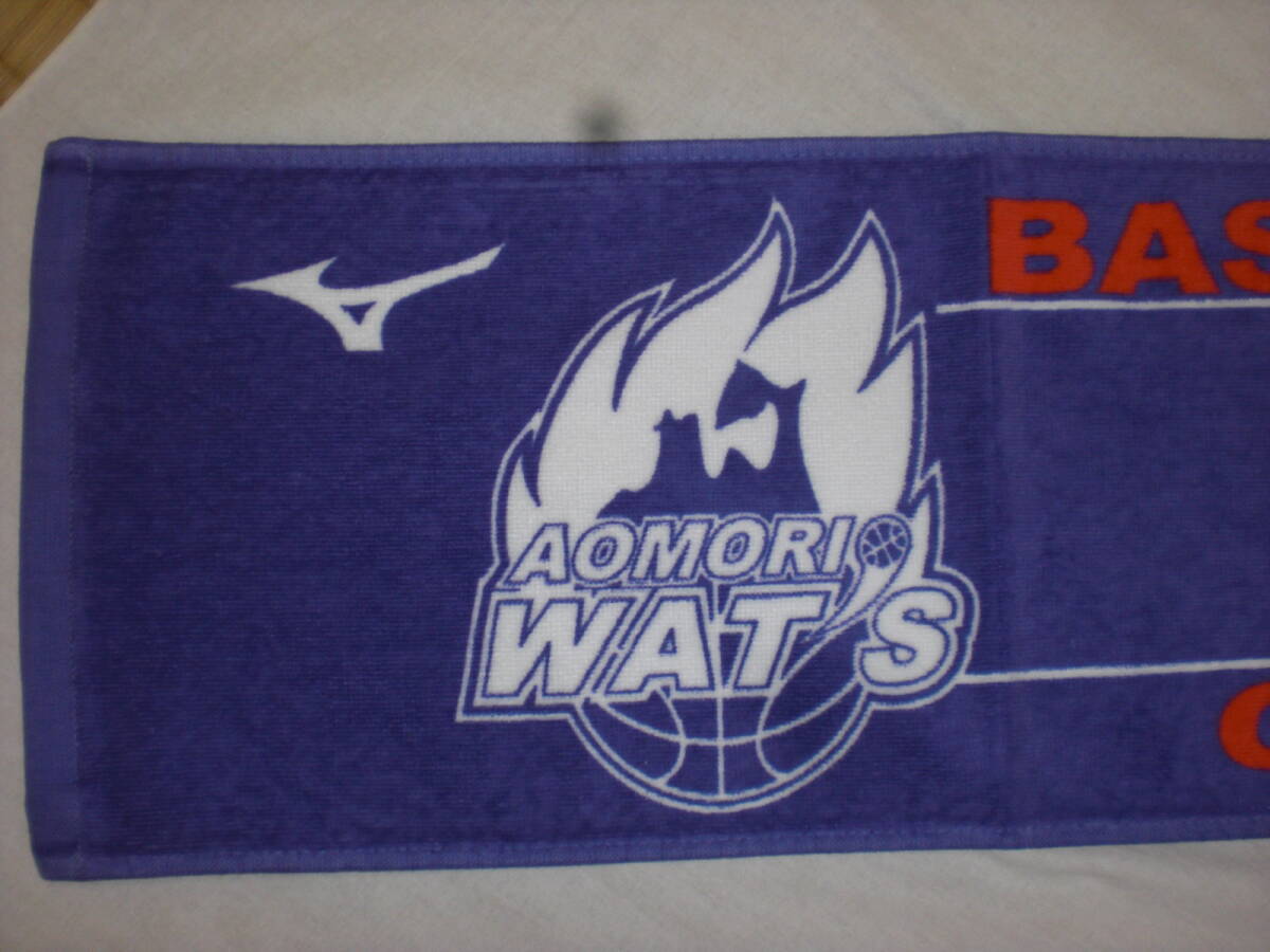 バスケットボールB2リーグ・青森ワッツのタオルマフラー。ミズノ製で中国製。綿100%。サイズ:109×21㎝。未使用品ですが、画像3のように四隅に軽い染めムラあります。なお画像の黒い点はカメラの不具合によるものです。
