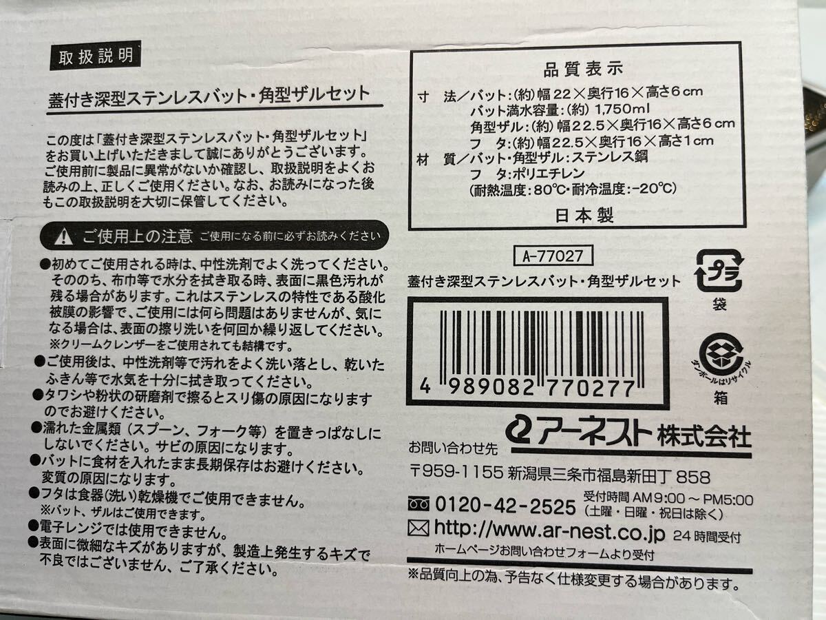 材質/バット・角型ザル:ステンレス鋼