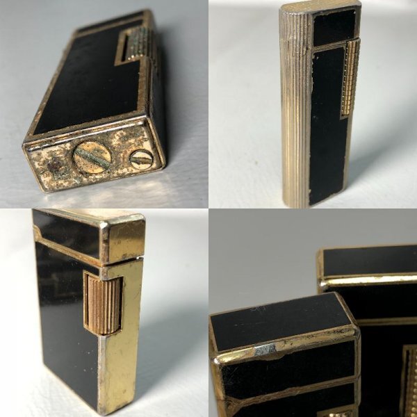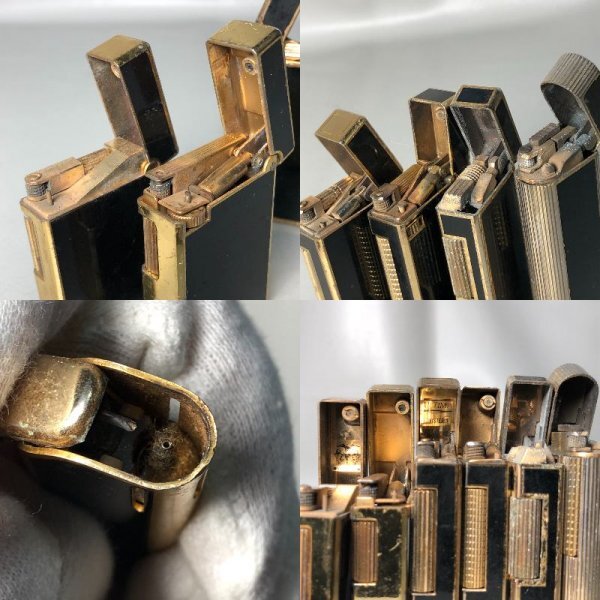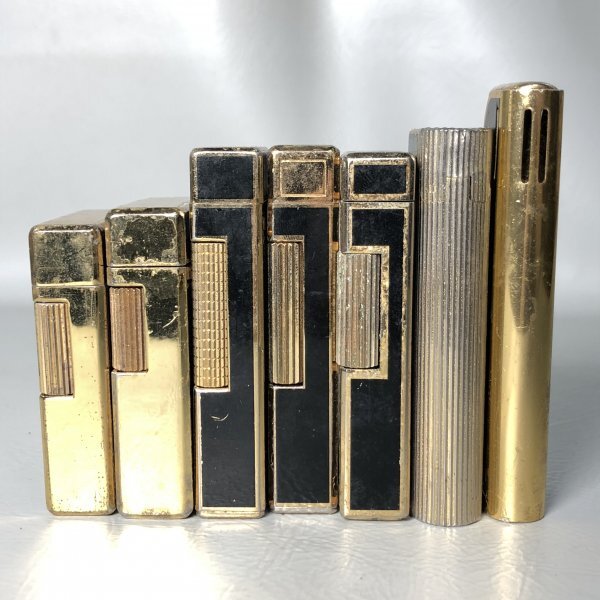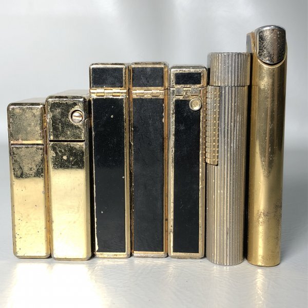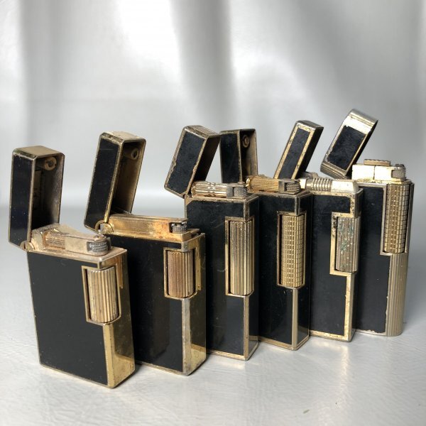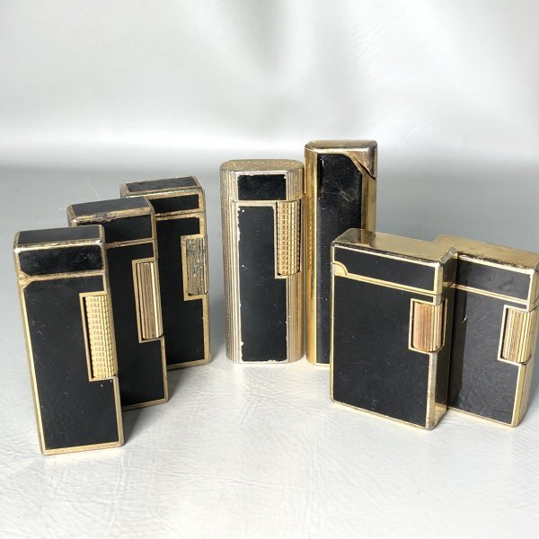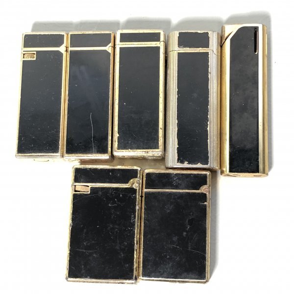 ジャンク まとめ7点 【 ブラック × ゴールドカラー 】 電子式 ローラー ガスライター オーバル スクエア 昭和レトロ 喫煙具■ 本671 東