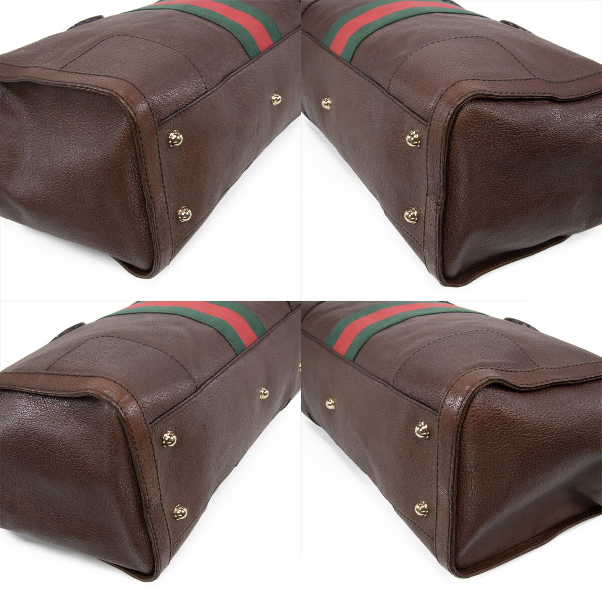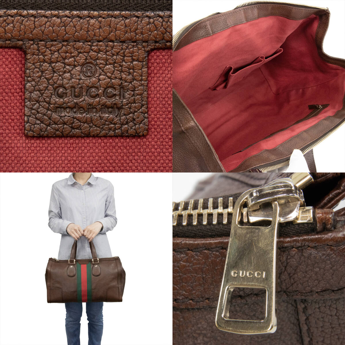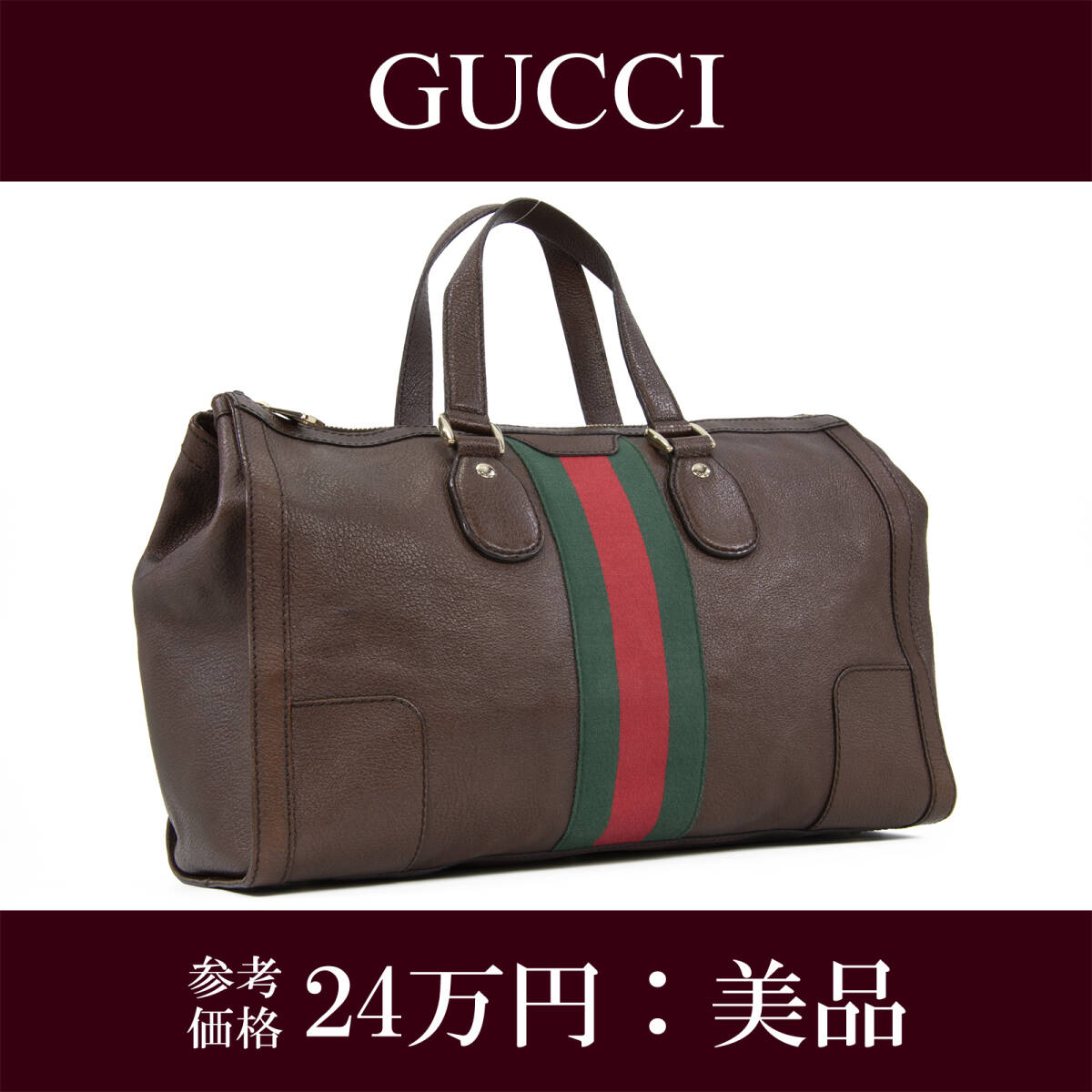 本物 送料無料 グッチ ハンドバッグ ボストンバッグ メンズ レディース シェリーライン 焦げ茶色 旅行 大きめ ロゴ 赤緑 革 鞄 バック F261