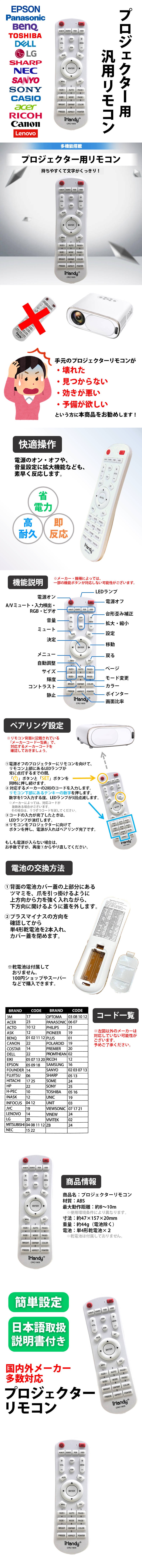汎用性が高いプロジェクター用のリモコンです。互換品です。 |