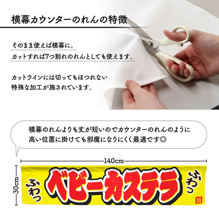■割れ目のないのれんです。カットラインに沿ってハサミで切り込みを入れることもできます。竿通し部分まで切らないようにご注意ください。
