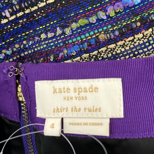 ケイトスペード Kate spade スカート サイズ4 S - パープル×ゴールド×マルチ レディース ひざ丈/ボーダー ボトムス