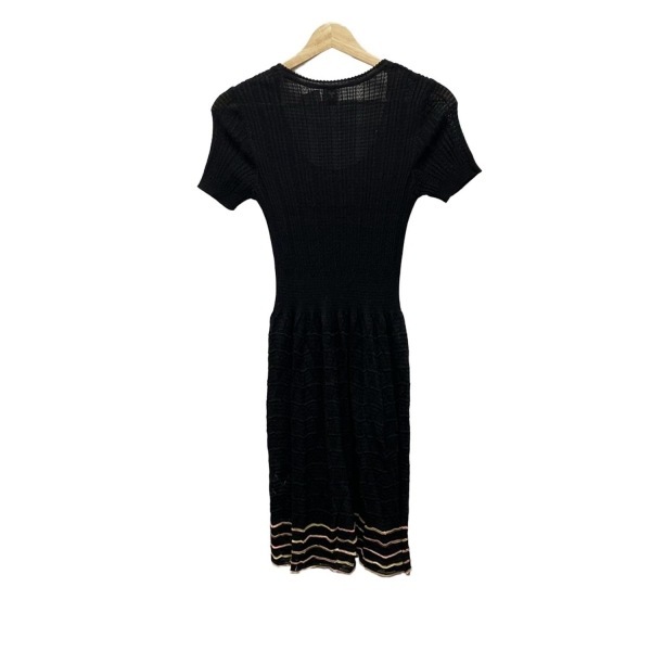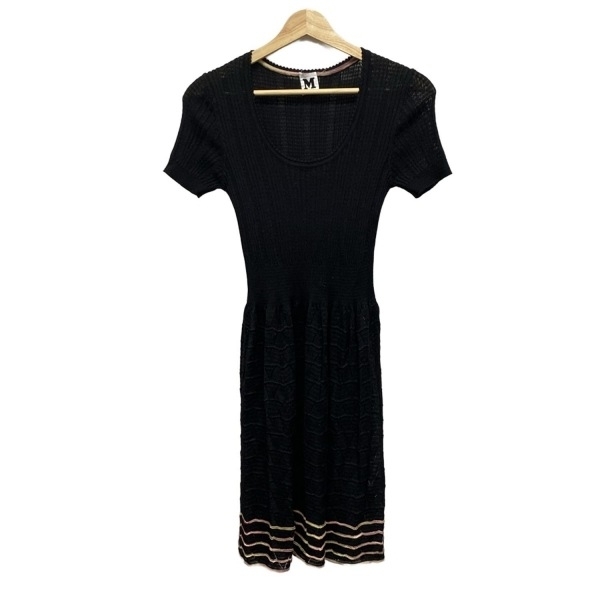 ミッソーニ MISSONI サイズ44 L - 黒×マルチ レディース 半袖/ひざ丈/ニット ワンピース